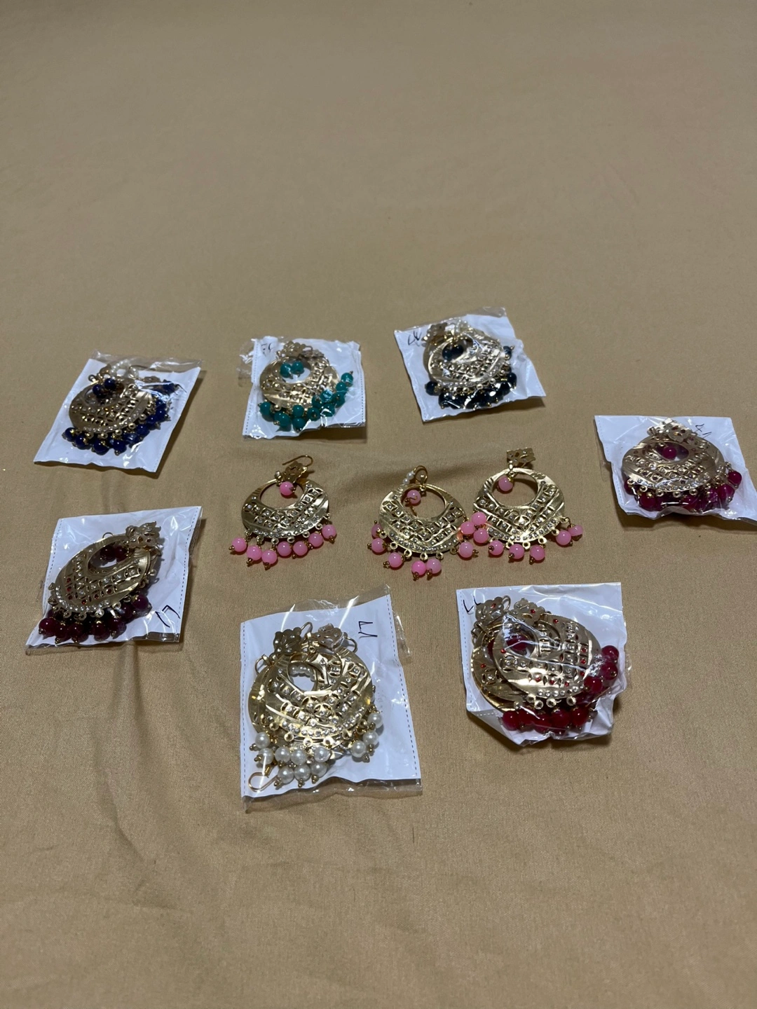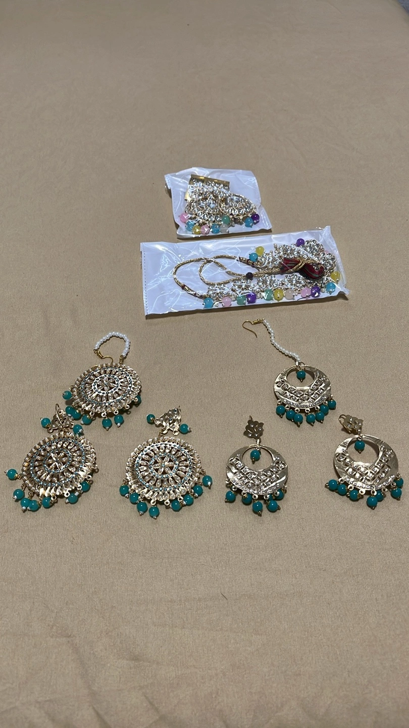Selling a beautiful set of earrings and a tikka. They are gold in colour and have colourful beads. Perfect for weddings or special occasions!