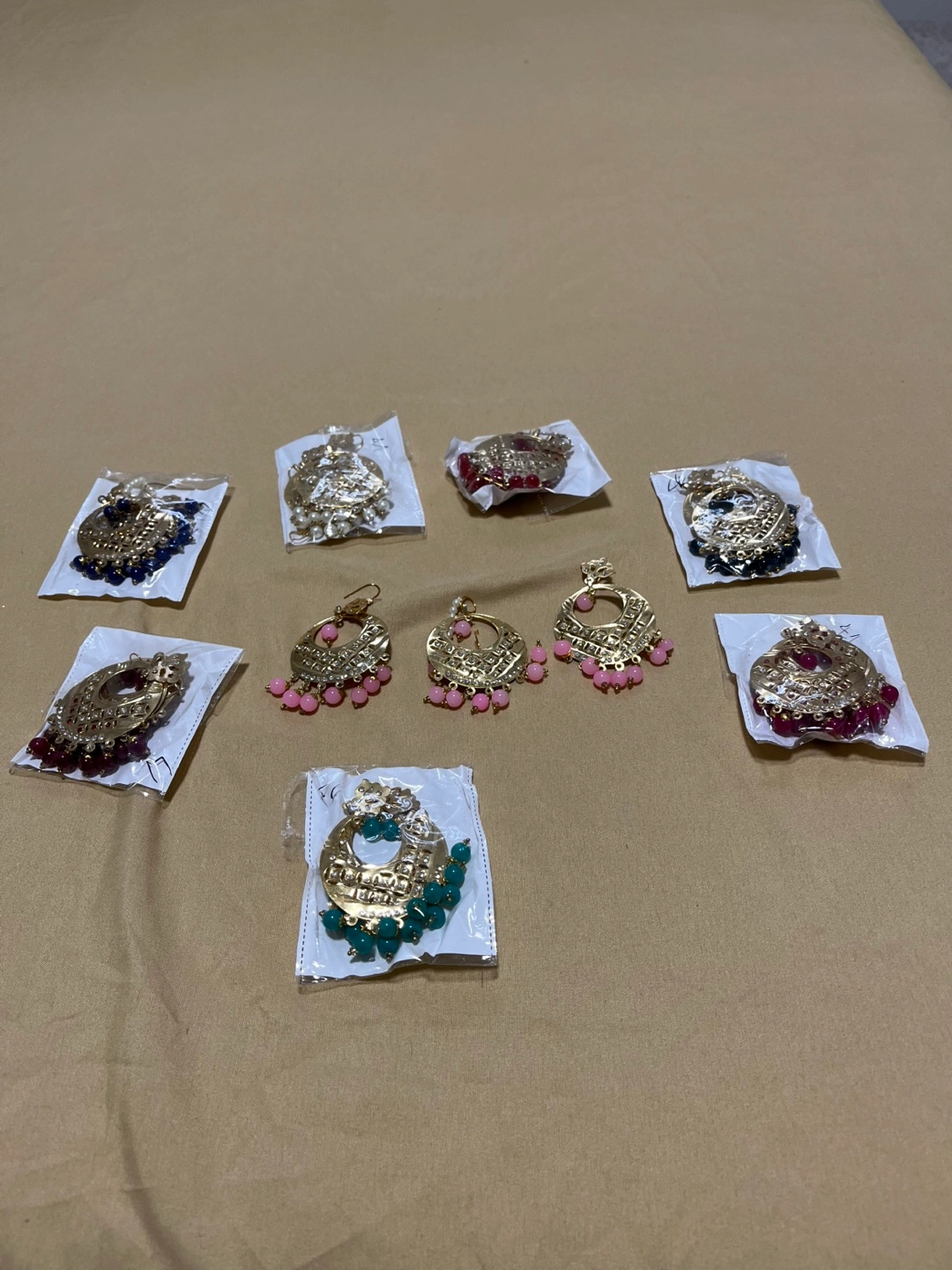 Selling a beautiful set of earrings and a tikka. They are gold in colour and have colourful beads. Perfect for weddings or special occasions!