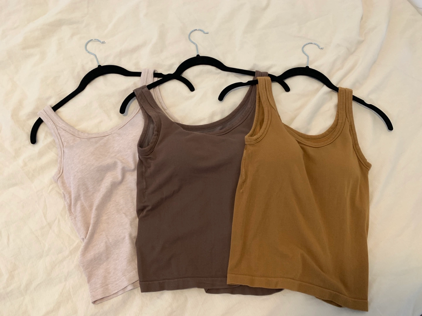 343Selling a set of three tank tops in neutral colours! Includes beige, brown, and tan. Perfect for layering or wearing on their own during warmer weather