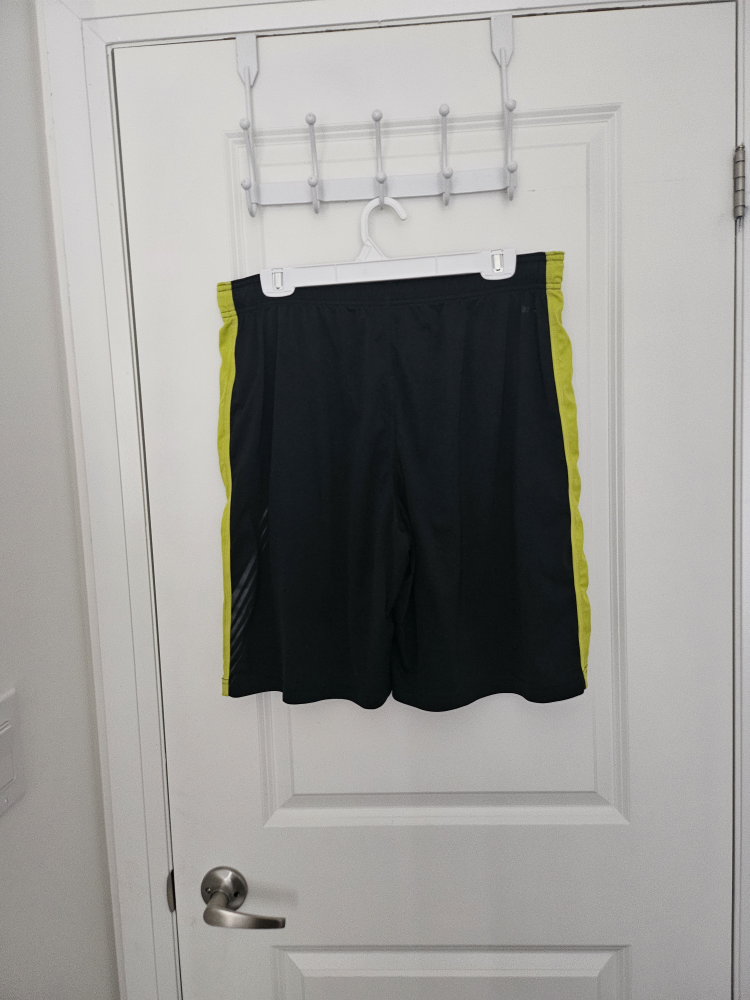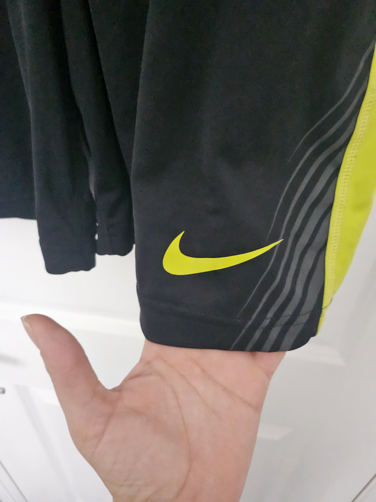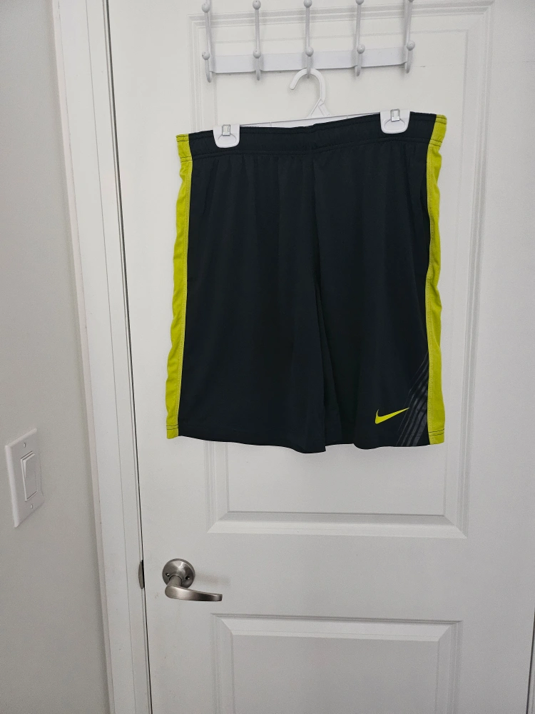 Selling a pair of Nike athletic shorts in black with yellow accents! They're in great condition and perfect for sports or working out. Excellent condition