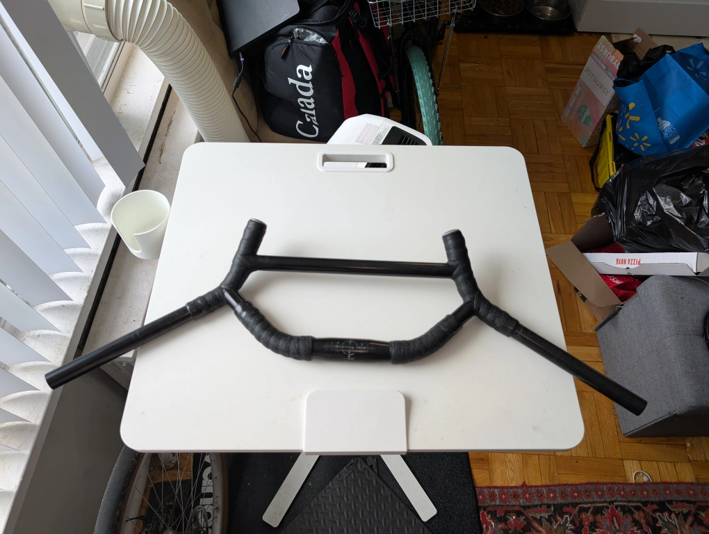 Selling a used Surly Moloko handlebar! It's black and has some handlebar tape on it. The diameter is 31.8mm. Great for bike touring or just cruising around town!