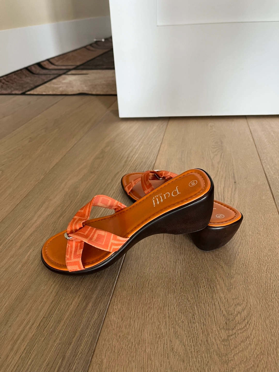 These Patti Italy sandals are in great condition and ready for a new home! They are a size 38 and feature a stylish orange patterned strap. Perfect for adding a pop of colour to your summer outfits!