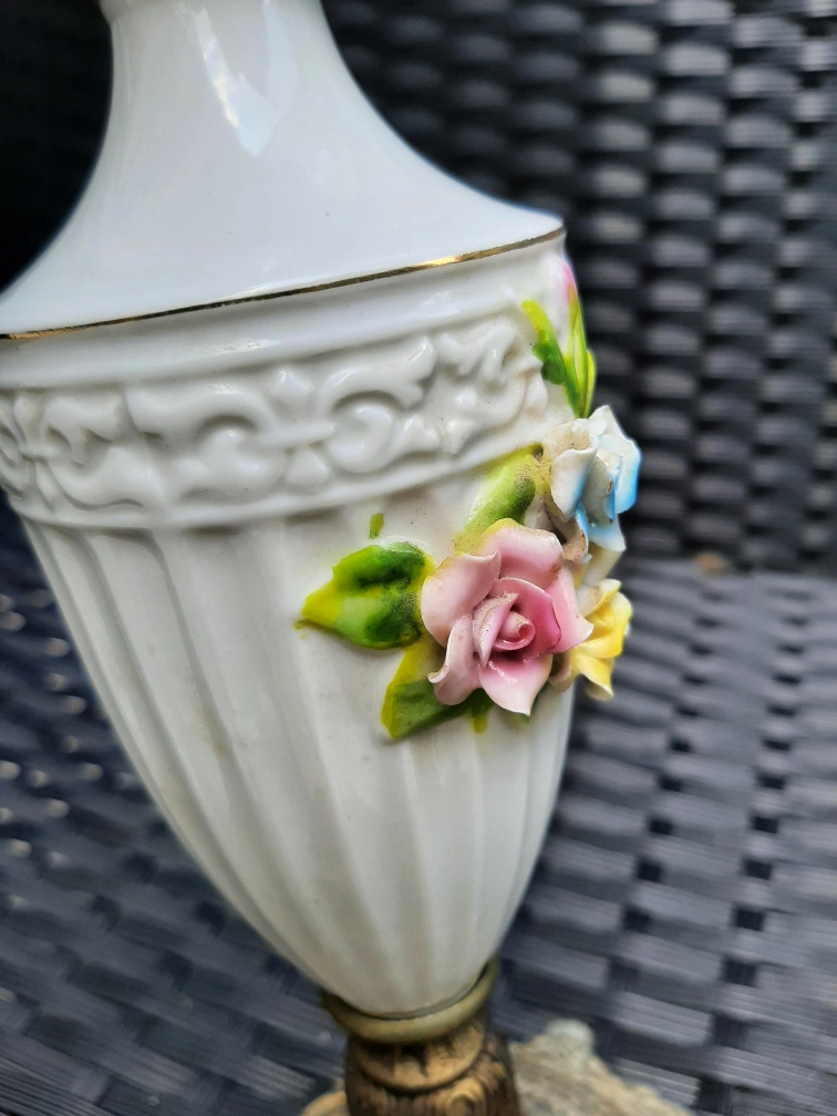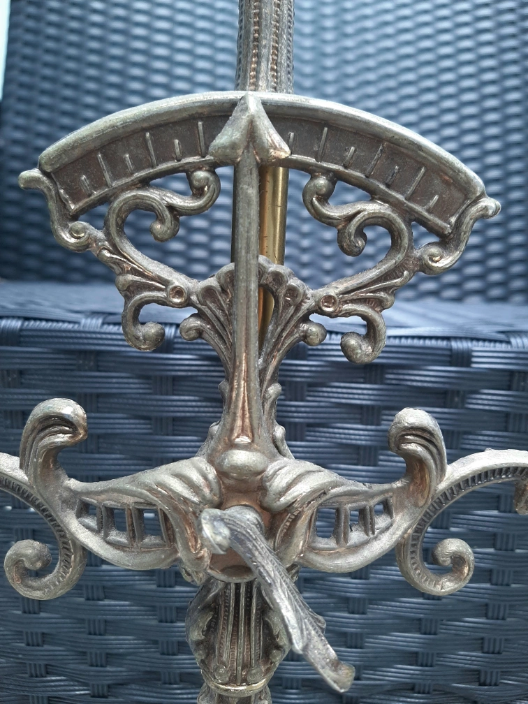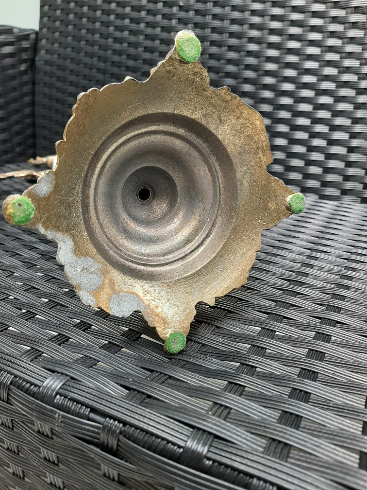 Selling a vintage candle holder with an ornate metal design. It has a unique and decorative look, perfect for adding a touch of elegance to any room. It shows some signs of wear and use, which adds to its vintage charm