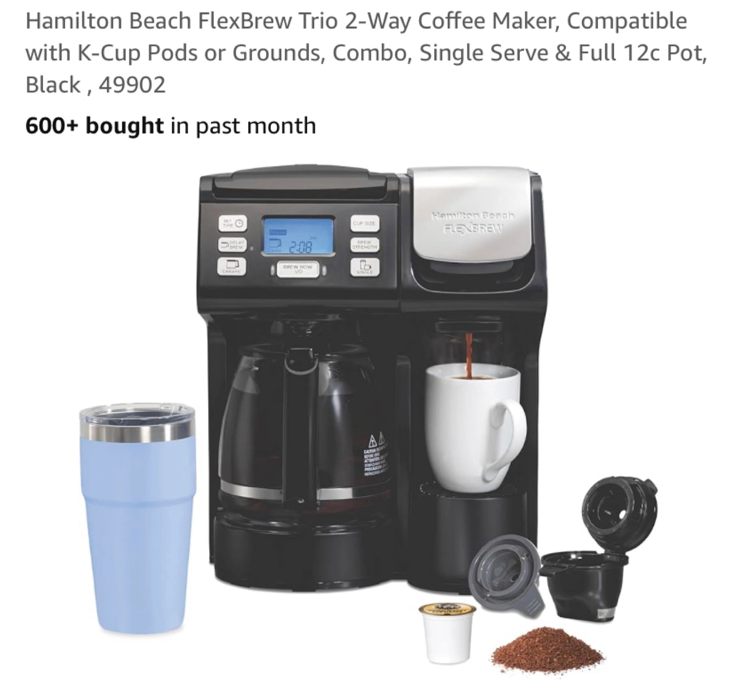 Selling a Hamilton Beach FlexBrew Trio Coffee Maker in excellent condition! It's compatible with K-Cup pods or ground coffee, offering both single-serve and full 12-cup pot options.
