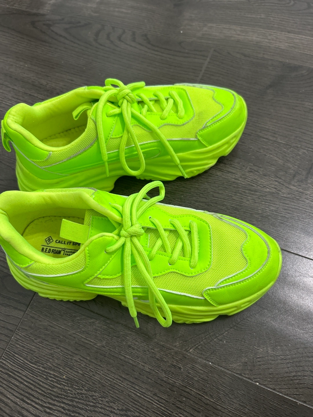 Selling a pair of bright neon green sneakers from Call It Spring! They're in great condition and ready for a new home. Perfect for adding a pop of colour to your outfit!