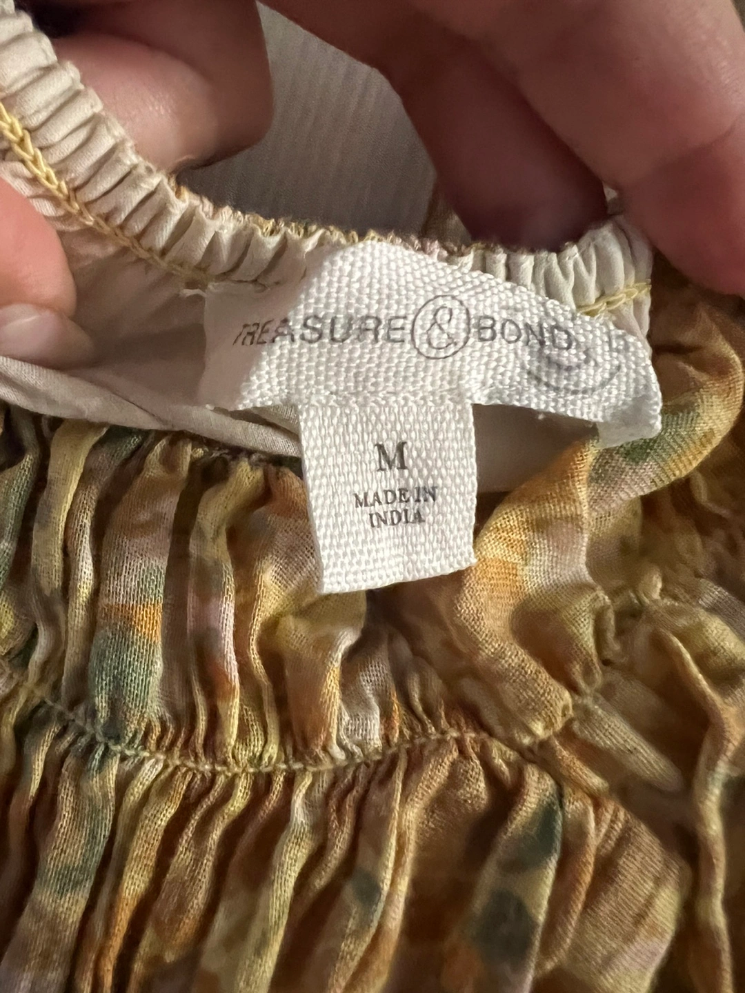96This is a Treasure & Bond dress in size medium. It features a lovely floral print and is made from 100% cotton. Perfect for a sunny day!