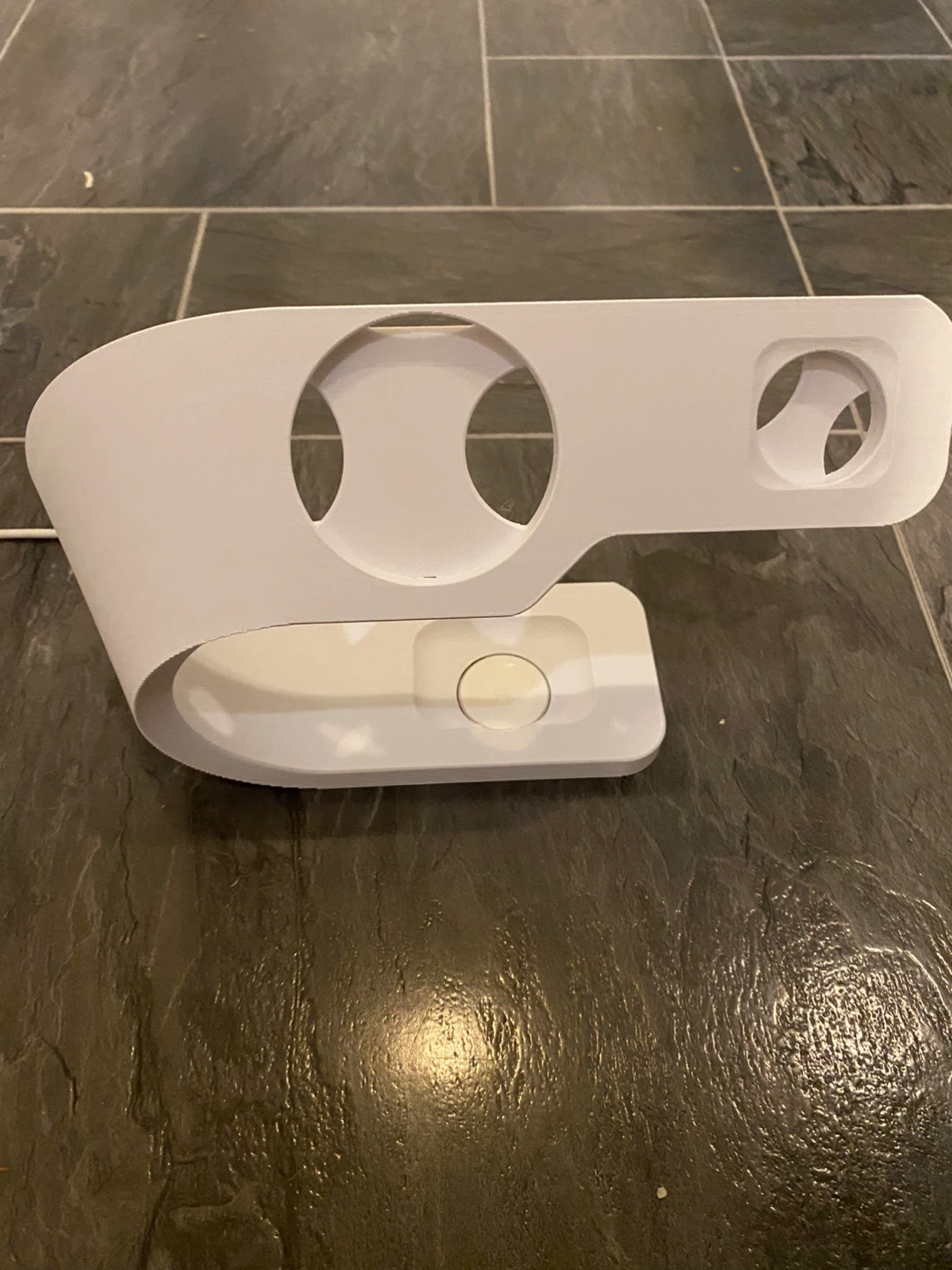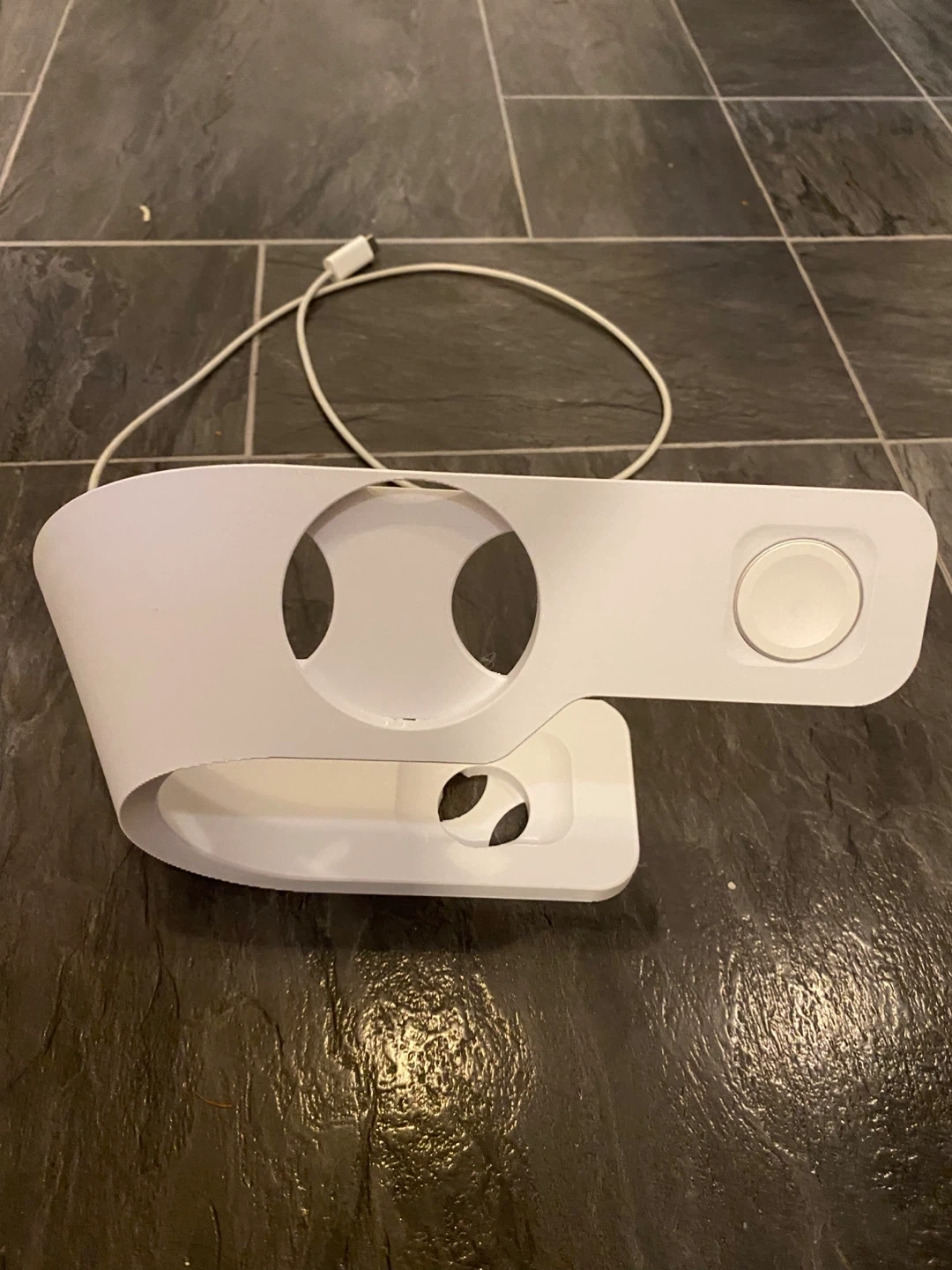 White Apple Watch and iPhone Charging Stand