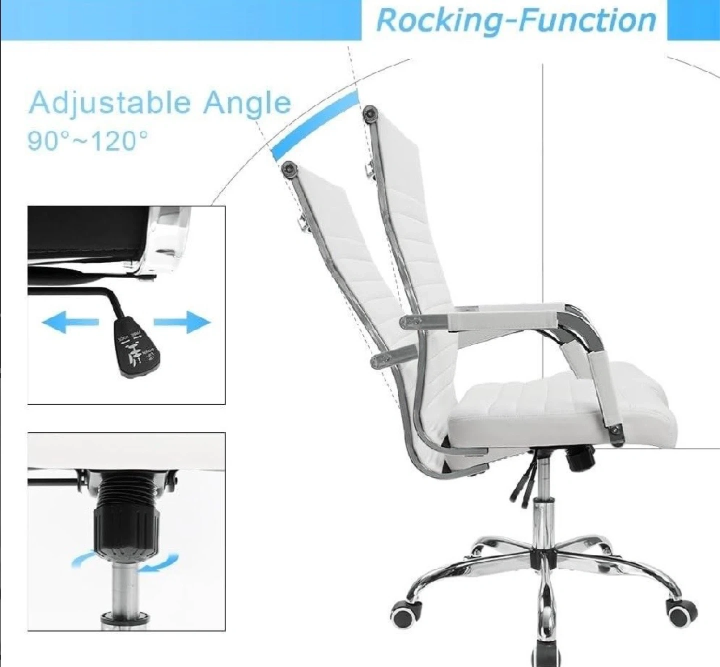 White Office Chair with Adjustable Angle and Rocking Function