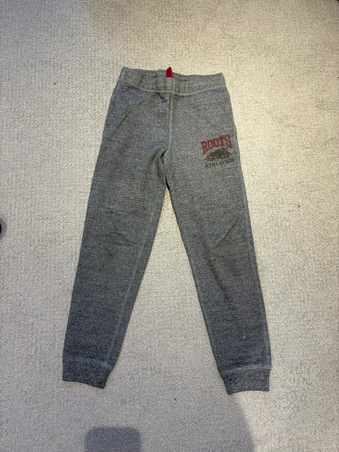 Grey joggers from Roots Athletics. These sweatpants are comfy and casual. Perfect for lounging or light activity!size 8