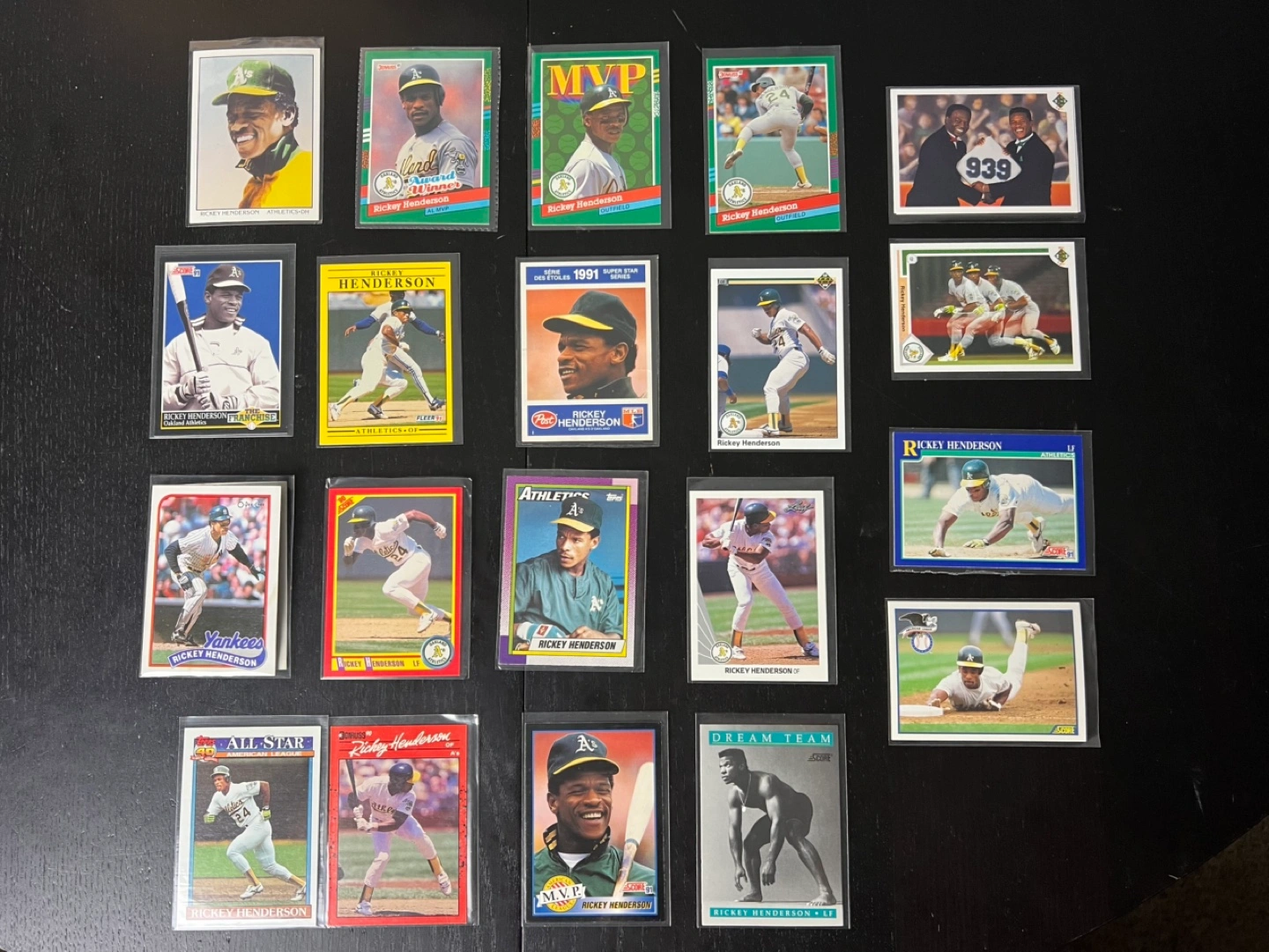 Ricky Henderson Baseball Card Lot – 20 Different Cards – Only $40!