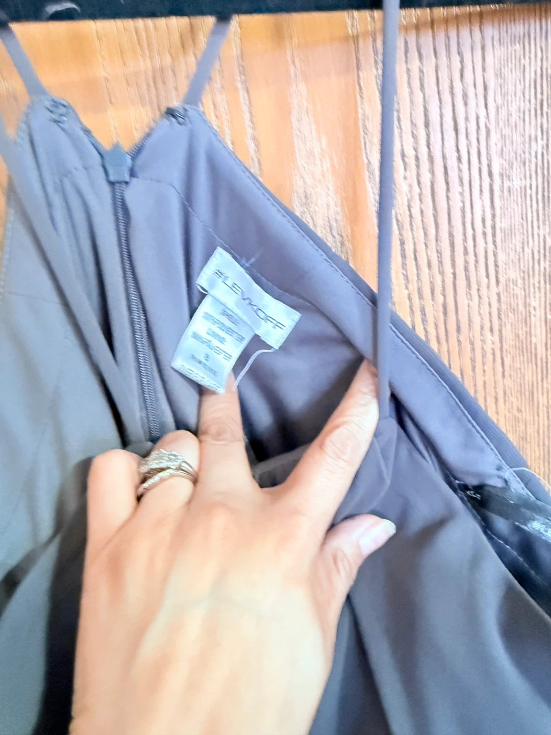 Slefkoff halter neck maxi dress in a dusty gray color. Made from 100% polyester. Features a flattering ruched bodice and flowing skirt. Perfect for formal events!