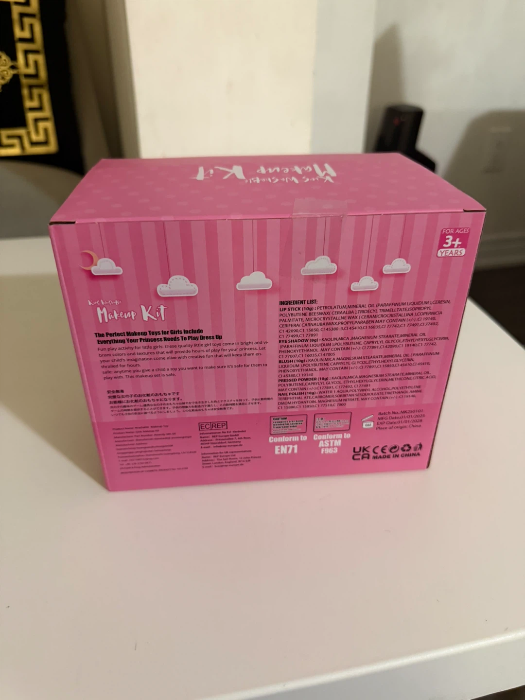 This kids' makeup kit comes in a unicorn bag with bright colours and textures. It's designed to be washable for easy cleanup. Suitable for ages 3 years and up!