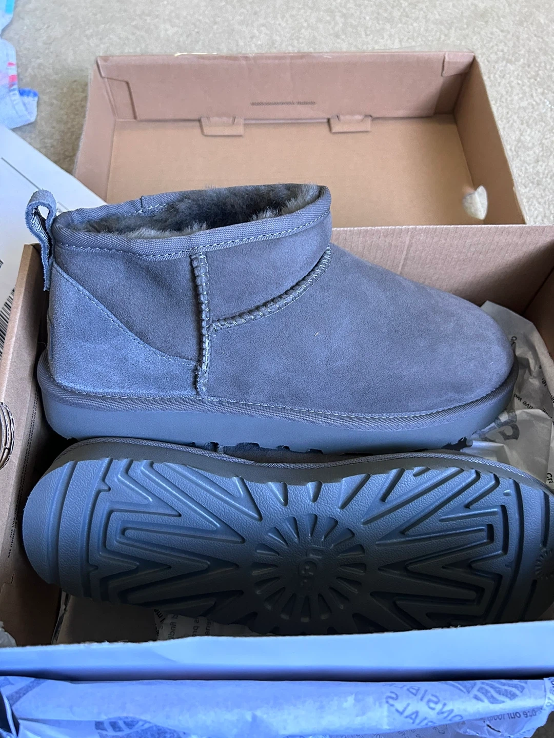 These UGG Classic Ultra Mini boots are a stylish grey colour and a size 9.