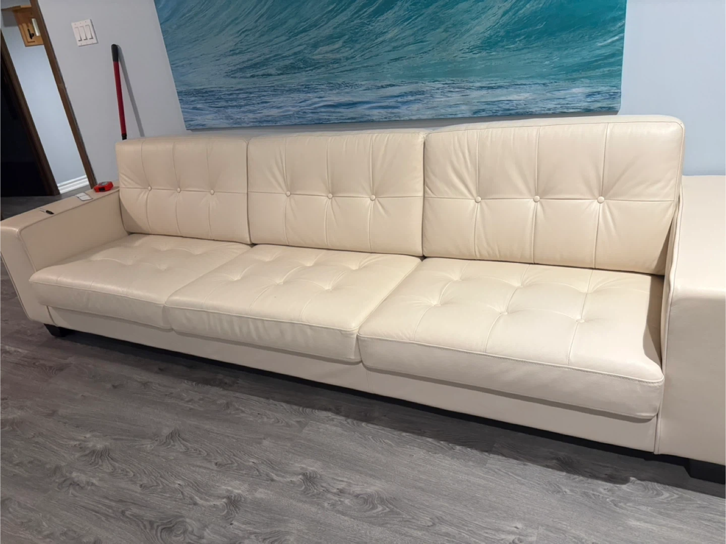 Cream Leather Tufted Sofa
