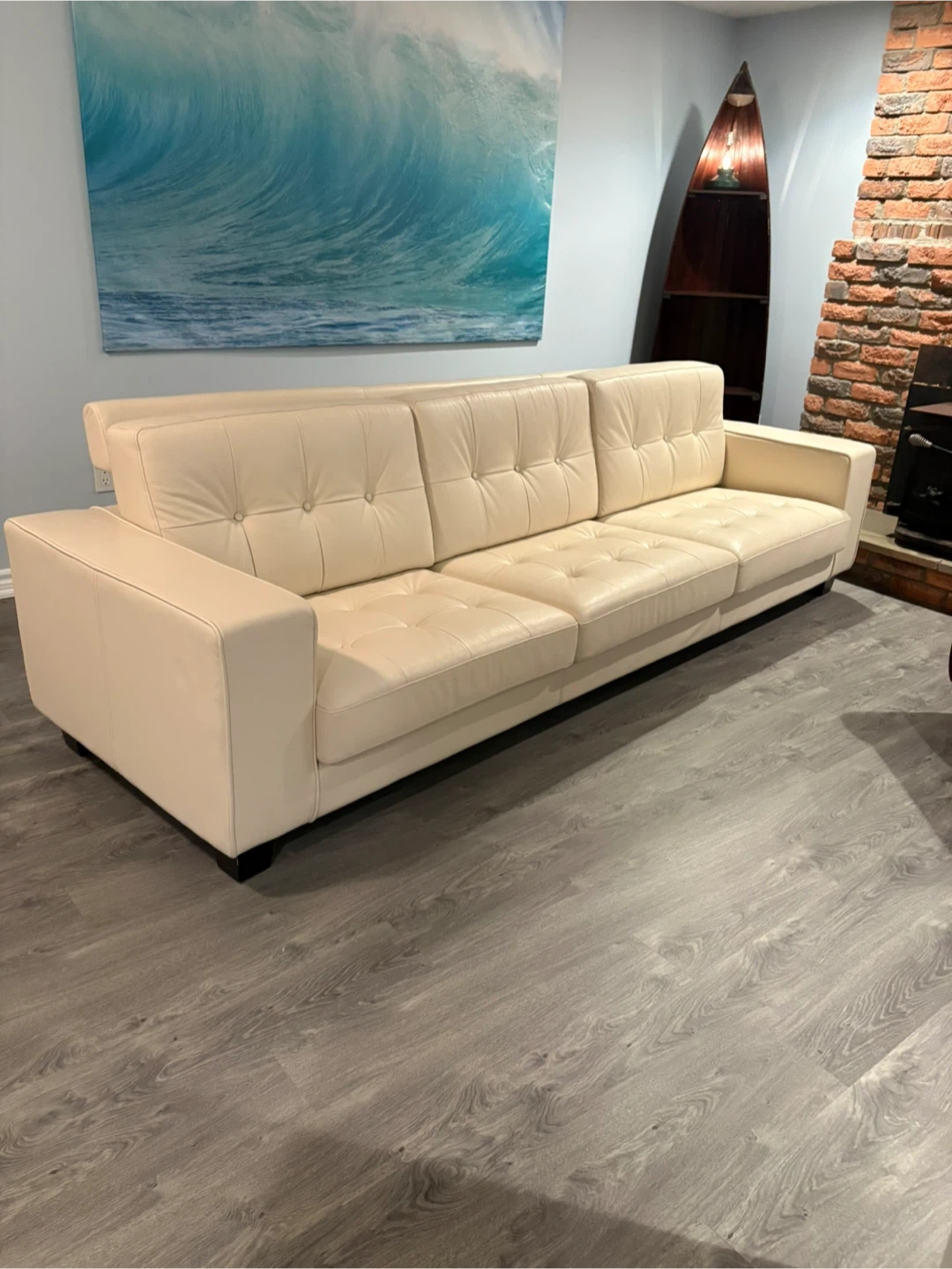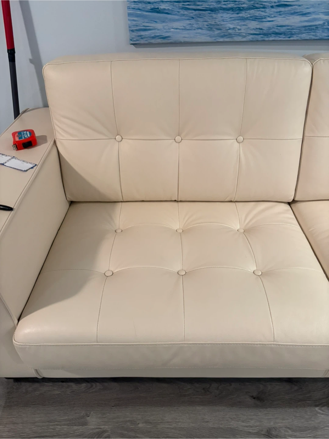 Cream Leather Tufted Sofa