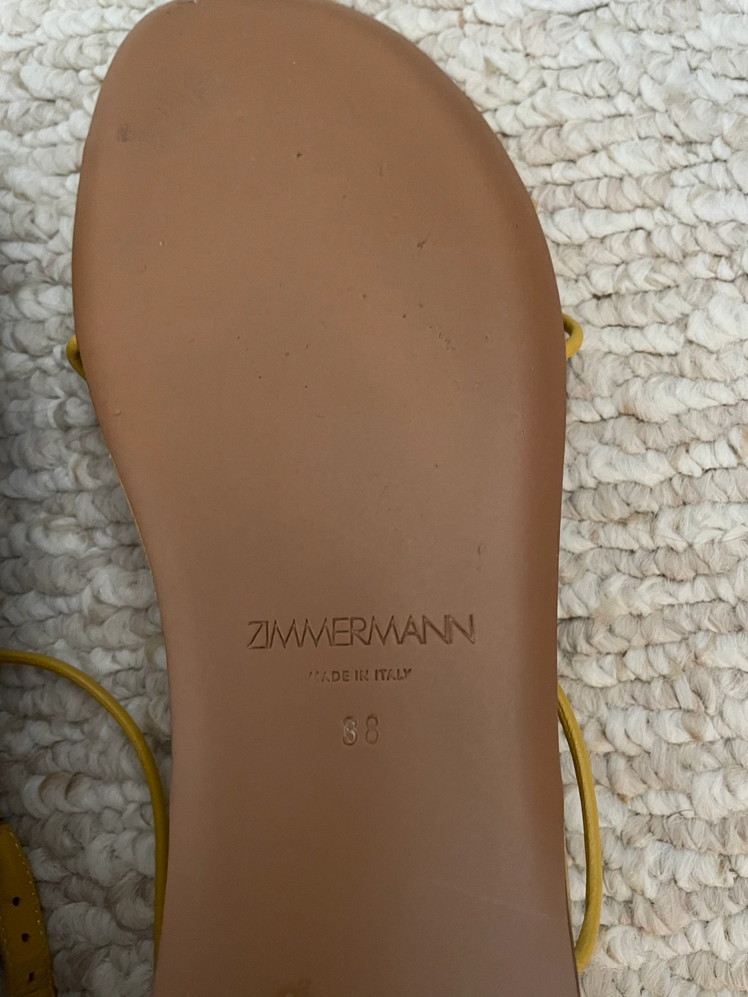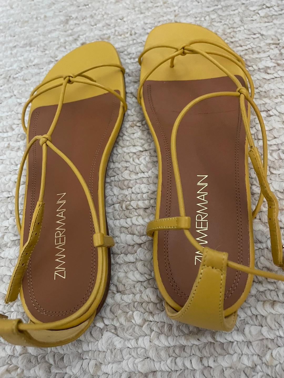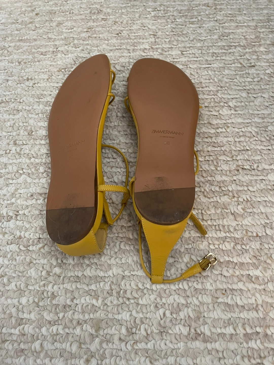 Zimmermann strappy flat sandal in daffodil yellow size 8 , I wore these only once last summer to a restaurant there almost like new, Buckle-fastening ankle strap. upper: leather. lining: leather. sole: leather insole and sole