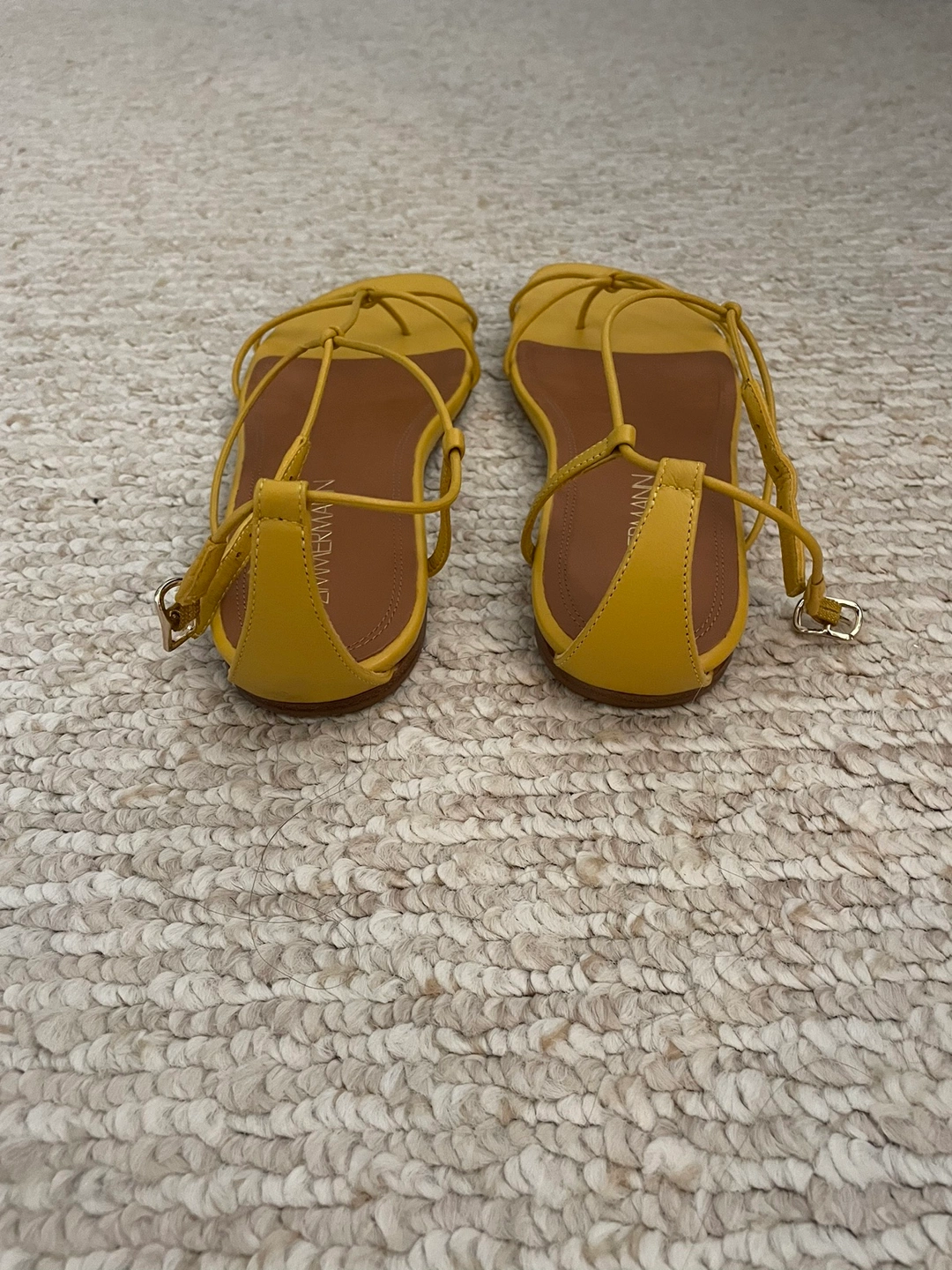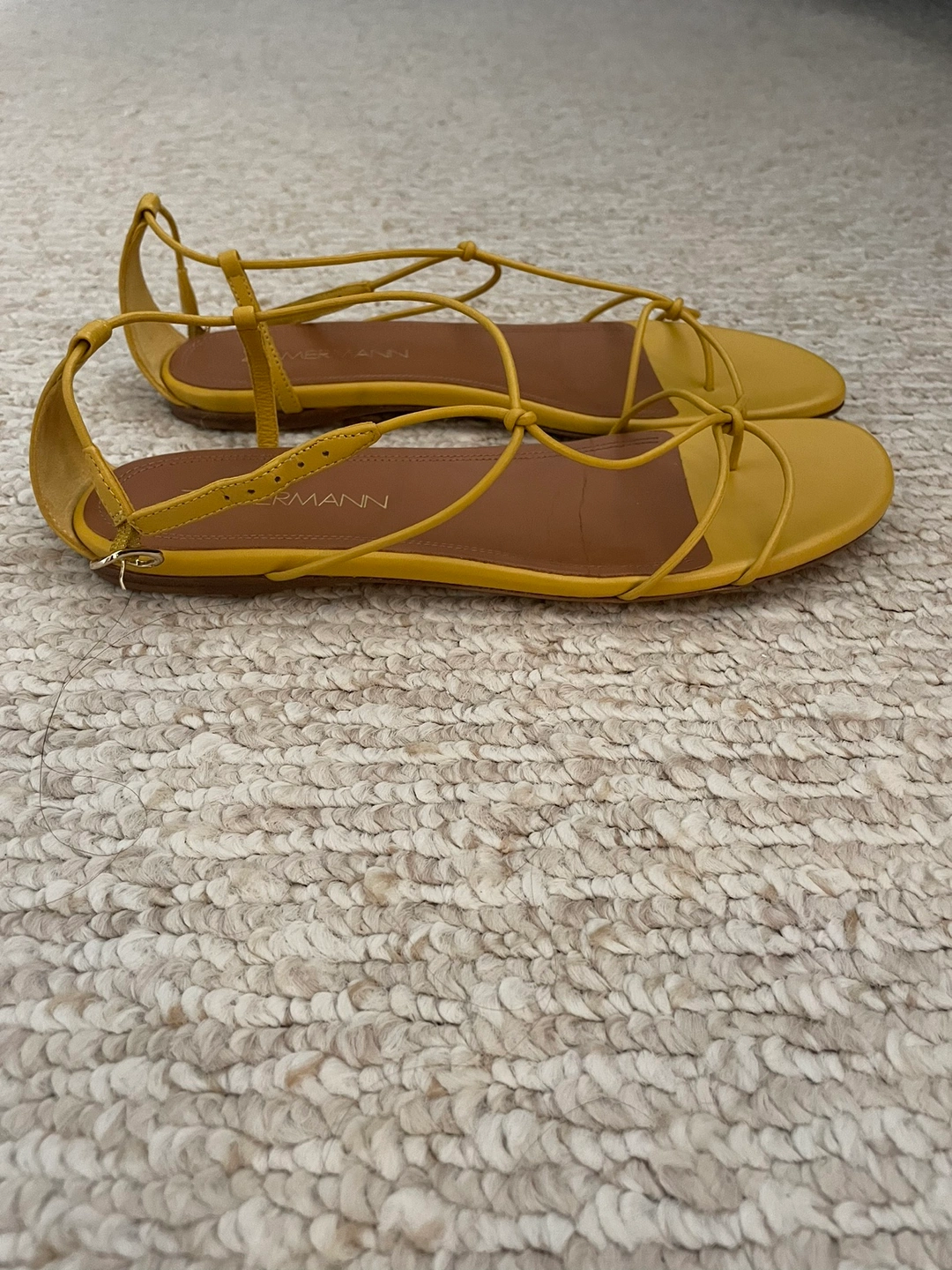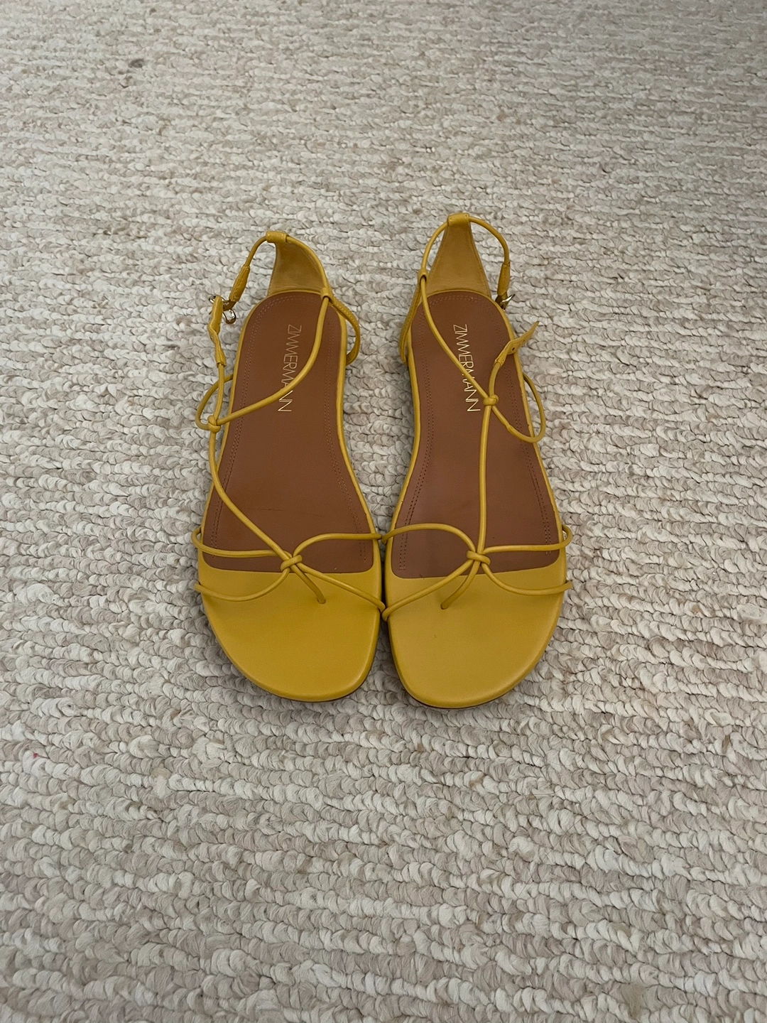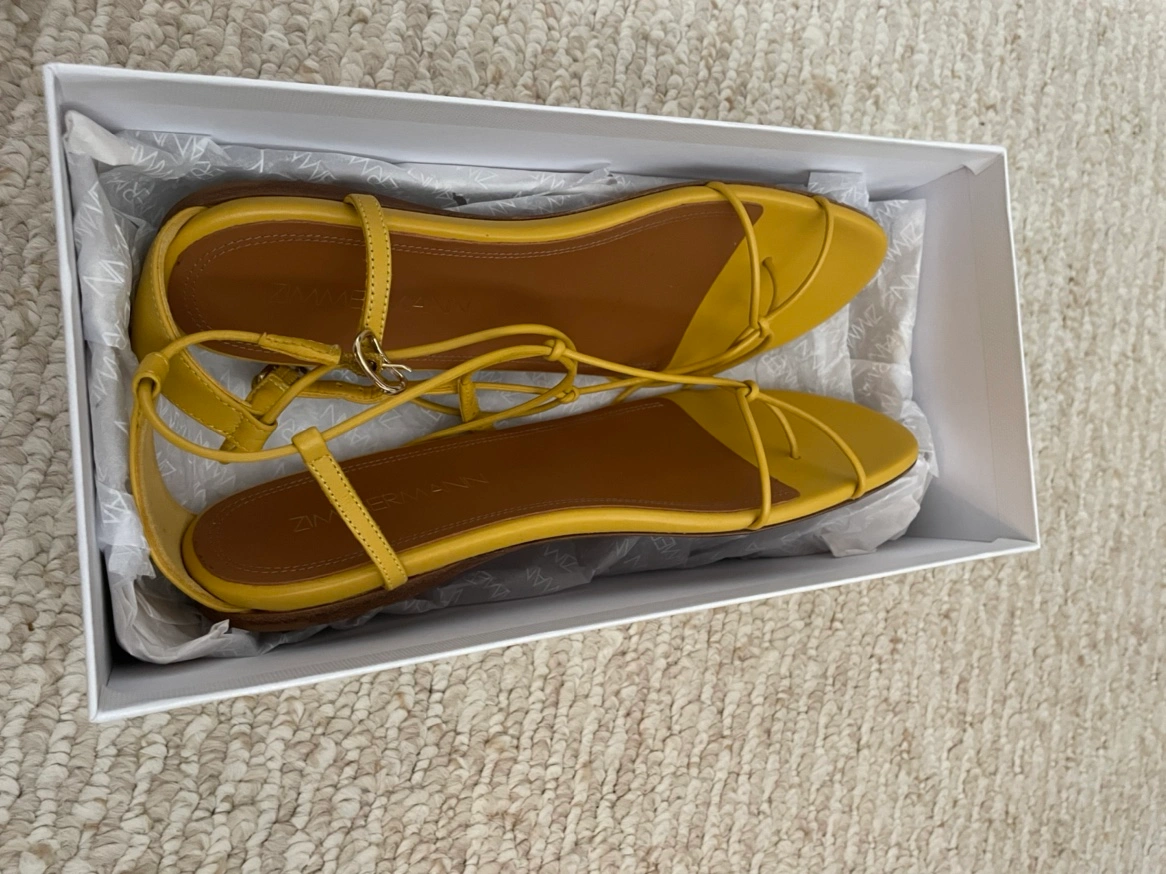 Zimmermann strappy flat sandal in daffodil yellow size 8 , I wore these only once last summer to a restaurant there almost like new, Buckle-fastening ankle strap. upper: leather. lining: leather. sole: leather insole and sole