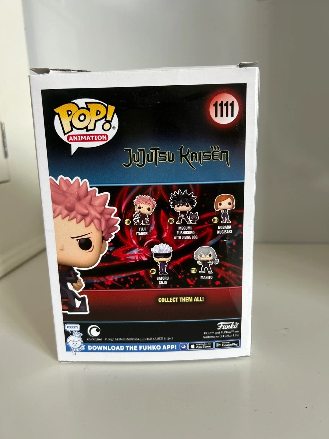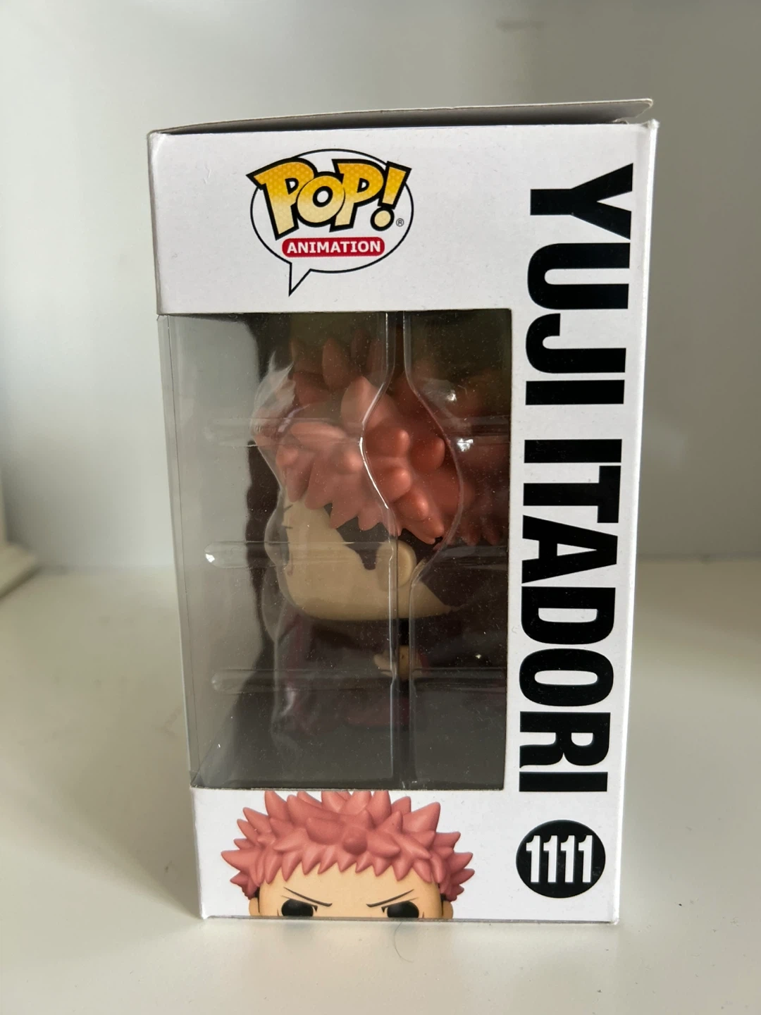 It's a Funko Pop! Animation vinyl figure of Yuji Itadori from Jujutsu Kaisen. This collectible is number 1111 in the series. It comes in its original box.