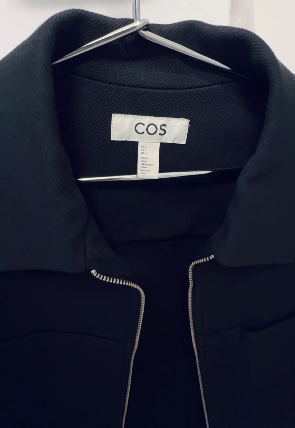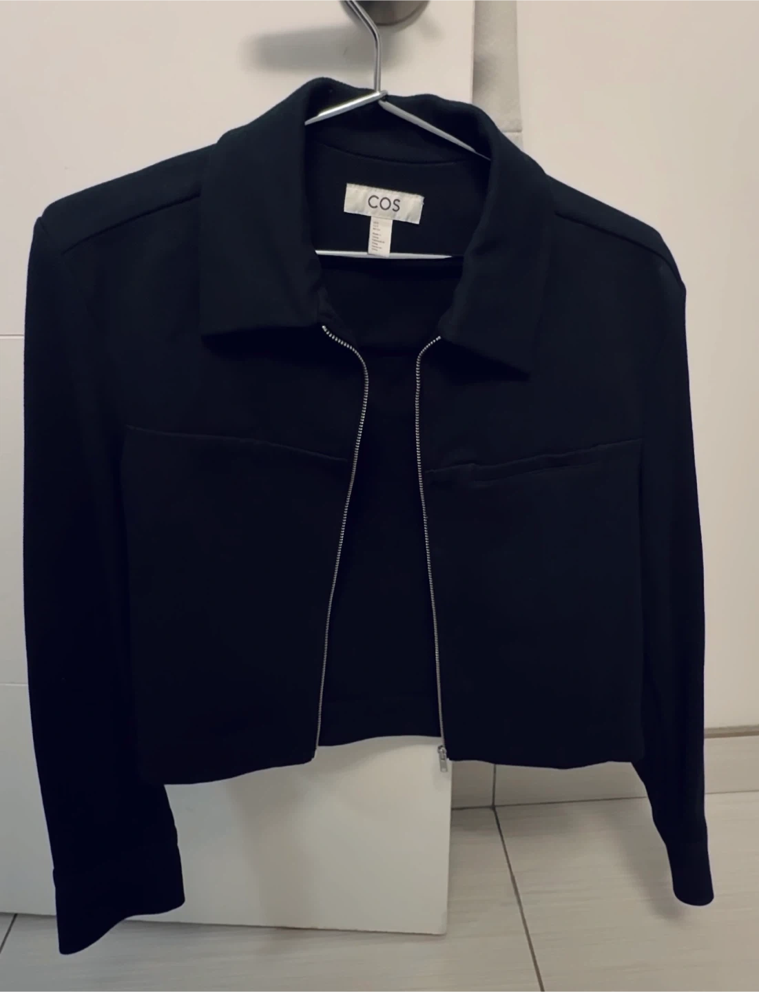 COS Black Cropped Twill Zip-Up Jacket - Size Small