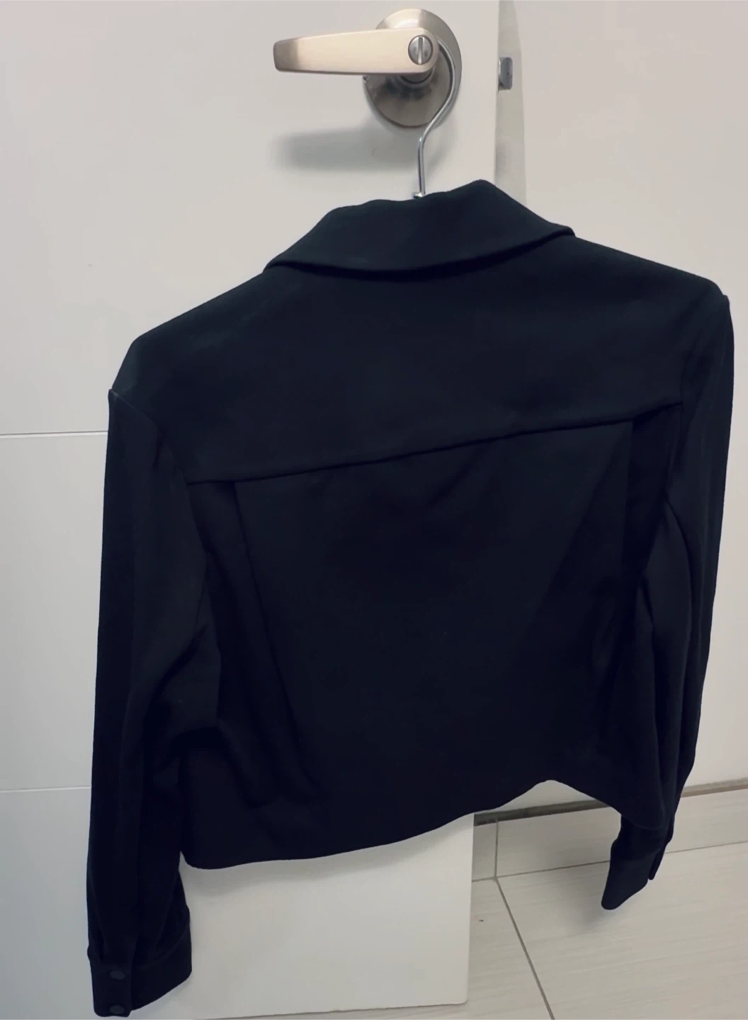 COS Black Cropped Twill Zip-Up Jacket - Size Small