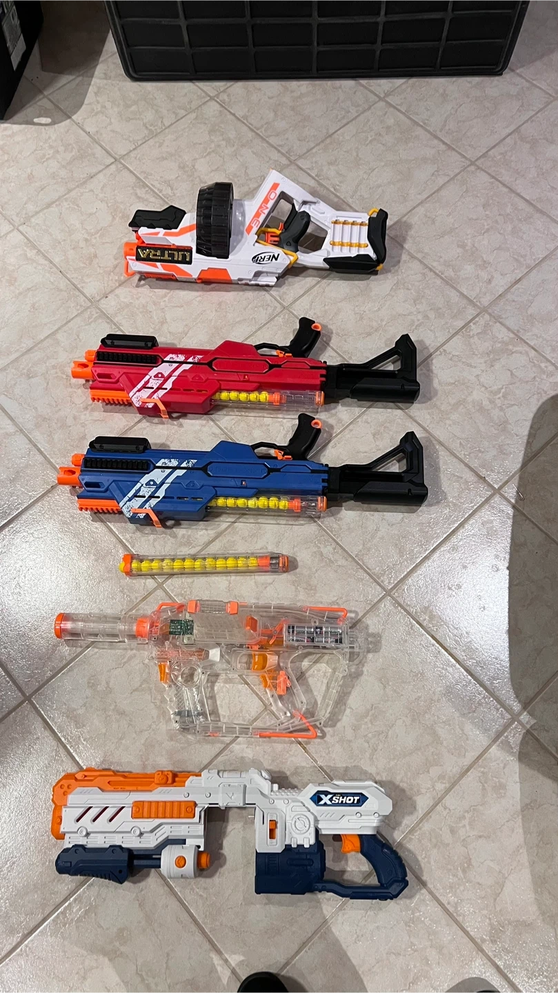 Selling a collection of Nerf blasters! Includes the Nerf Elite 2.0 Turbine and a variety of other models. All in good used condition and ready for some fun!