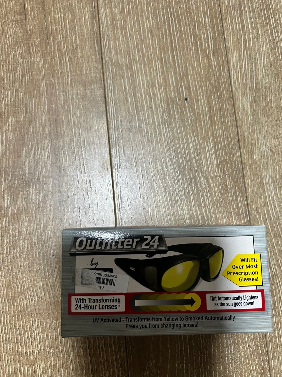 Selling a pair of Outfitter 24 sunglasses. These are designed to fit over most prescription glasses. They feature transforming 24-hour lenses that are UV activated and automatically lighten as the sun goes down. These lenses transform from yellow to smoked automatically, freeing you from changing lenses! #Freecycle