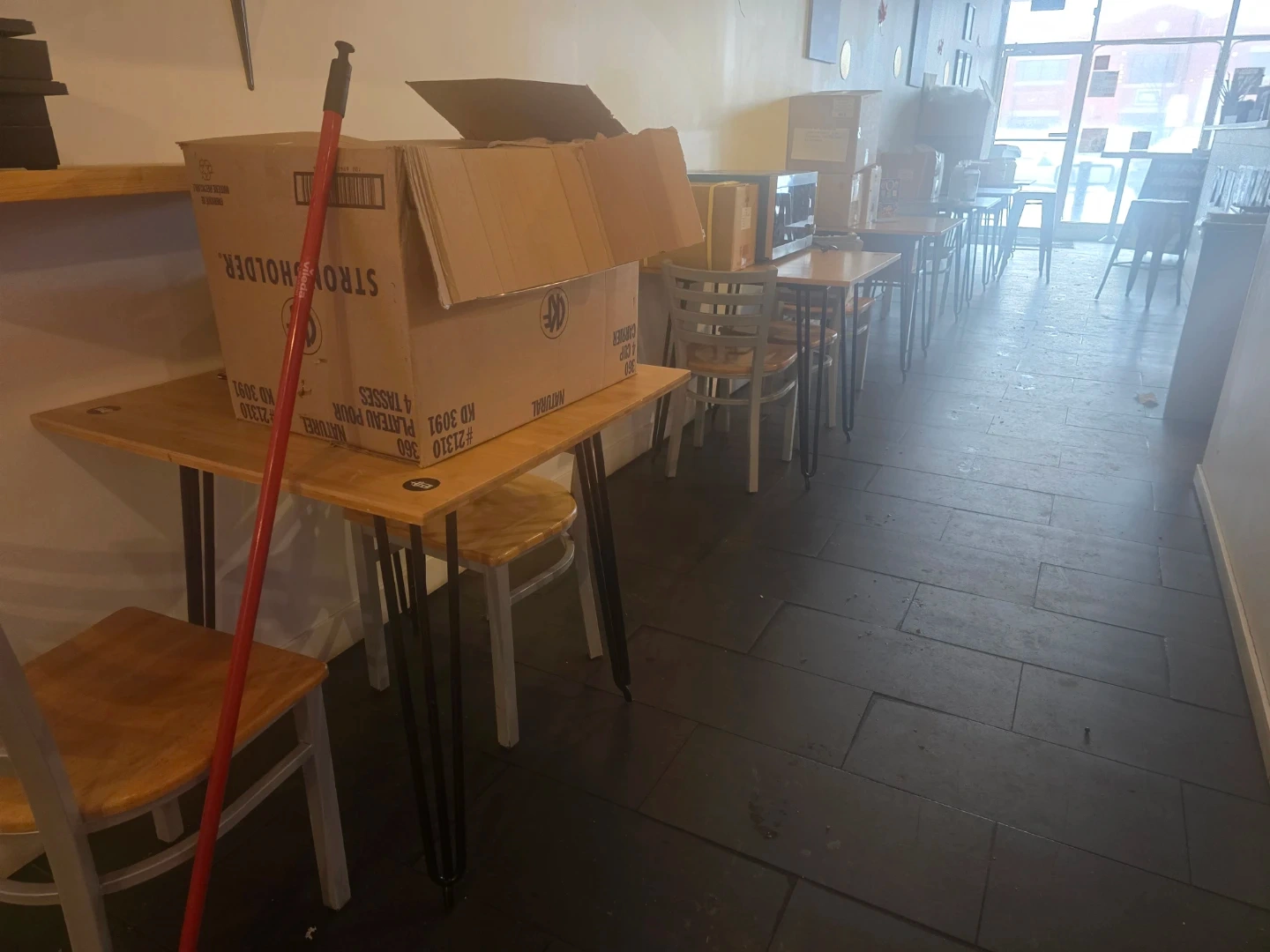 Ice machine , walkin cooler , stainless steel tables , prep coolers , tables and chairs , blenders , plates , ranges , flattops etc.