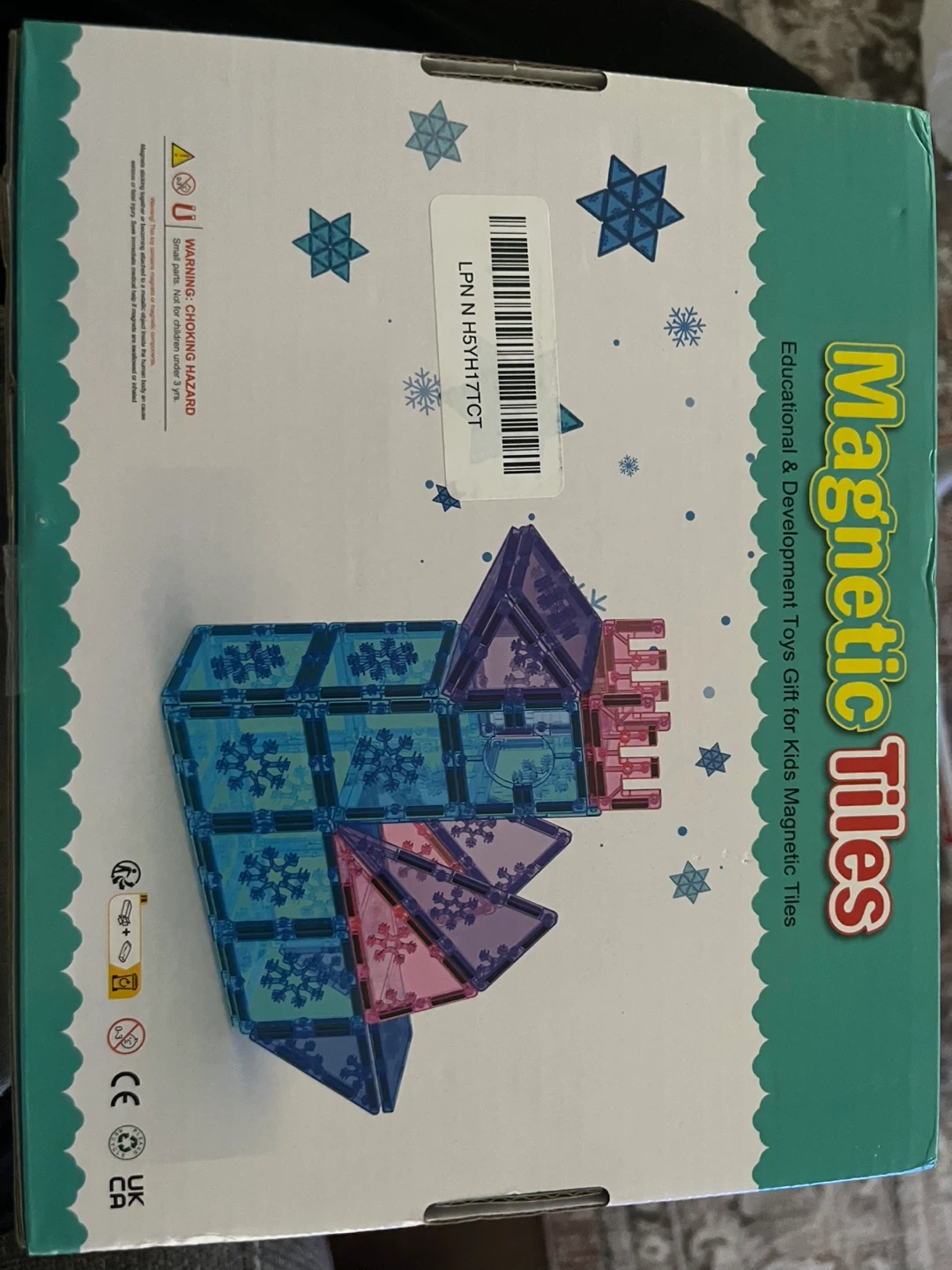 These are educational and development magnetic tiles for kids. They come in blue and pink and are made for fun building. Small parts warning applies.