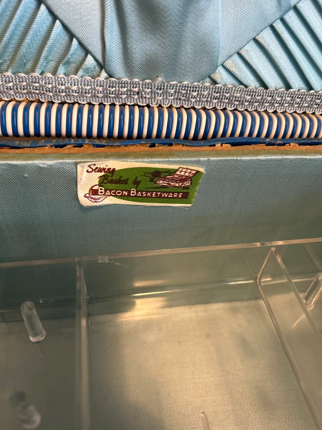Vintage sewing basket. Bacon Basketware brand. Perfect gift for the sewing/antique enthusiast in your life! Very rare find!! In vintage condition.