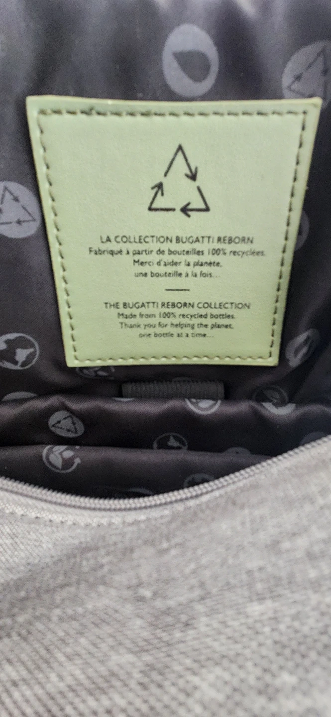 Grey Bugatti Bag made from 100% recycled bottles