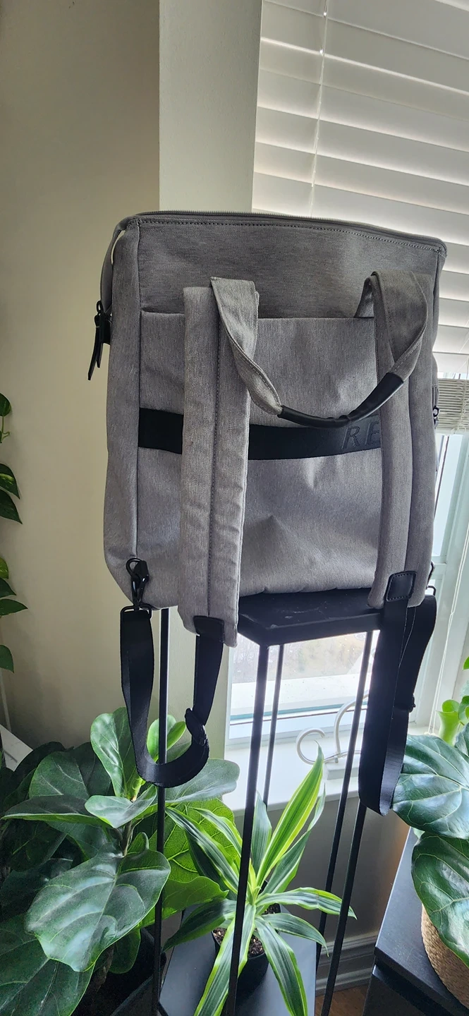 It has both short handles and padded backpack straps.