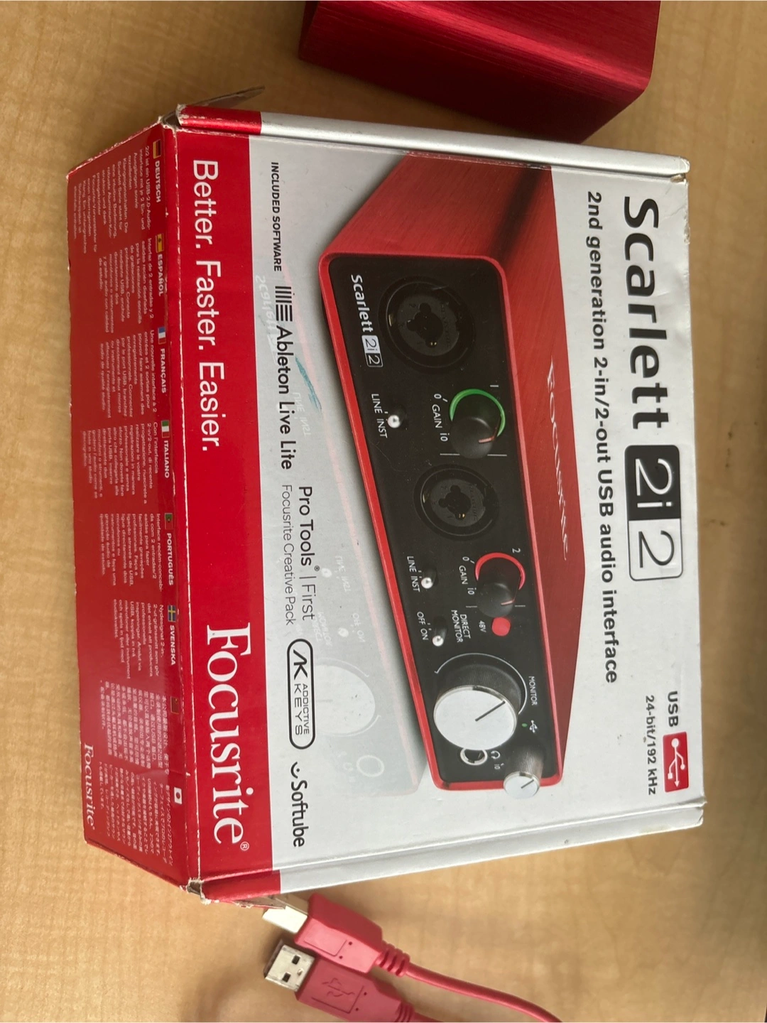 Selling a Focusrite Scarlett 2i2 2nd generation 2-in/2-out USB audio interface. It's working partially and comes with the original box and USB cable. Perfect for recording music or podcasts!