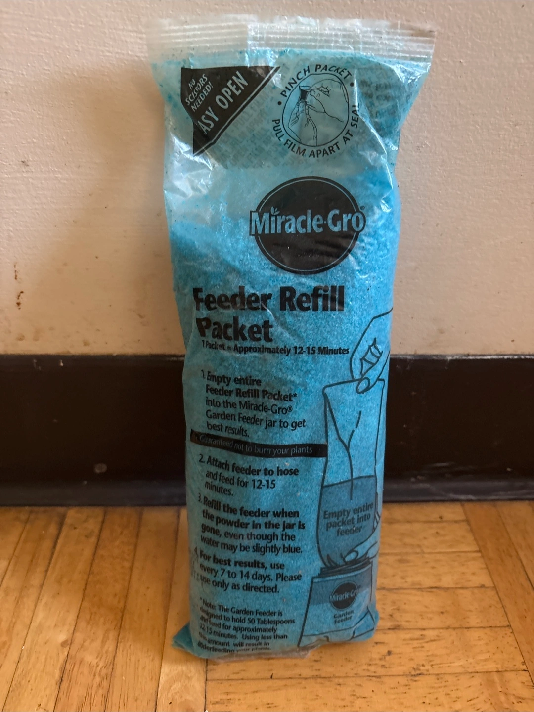 I have a Miracle-Gro Feeder Refill Packet for sale! This packet is designed to be used with the Miracle-Gro Garden Feeder jar to help you get the best results for your plants. Just empty the entire packet into the jar and attach the feeder to your hose. For best results, use every 7 to 14 days.