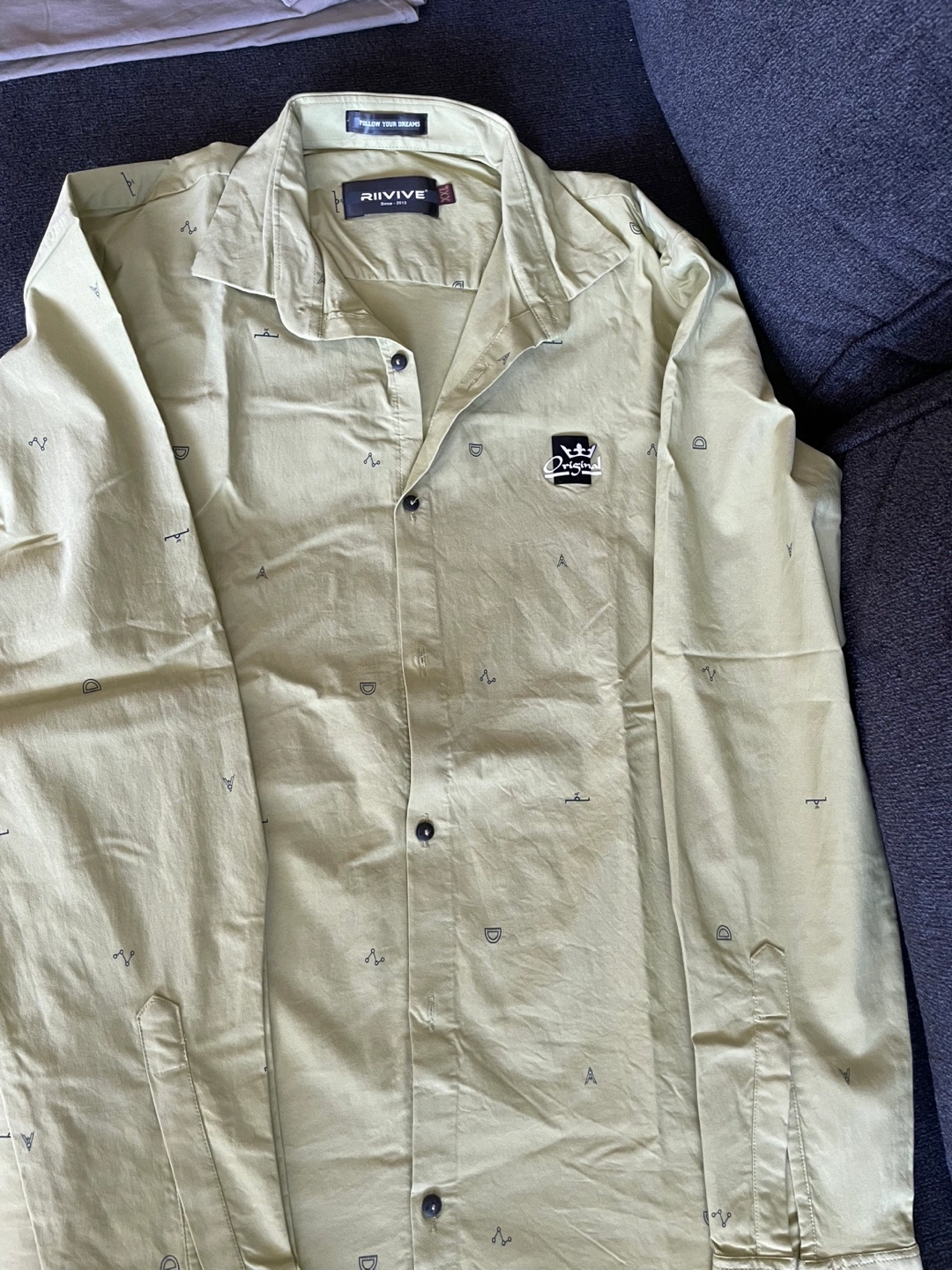 677Two button-up shirts for sale! One is a Tommy Hilfiger short-sleeve shirt, and the other is a Riivive long-sleeve shirt. Both are in great condition and ready for a new home