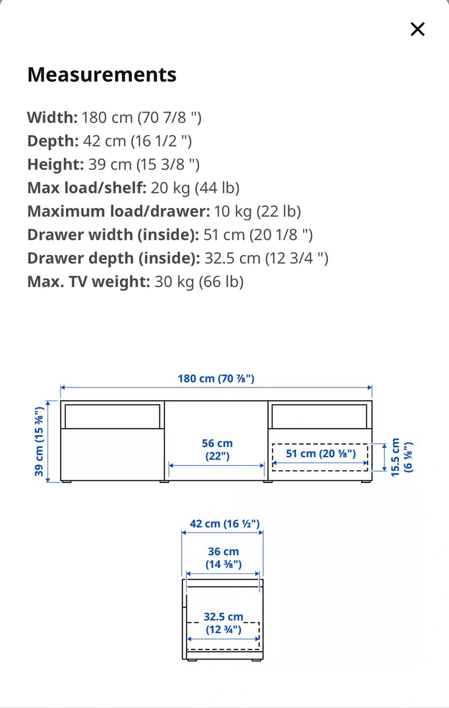 Selling a white IKEA BESTÅ TV unit. It comes with drawers and a door for storage.