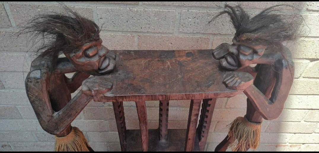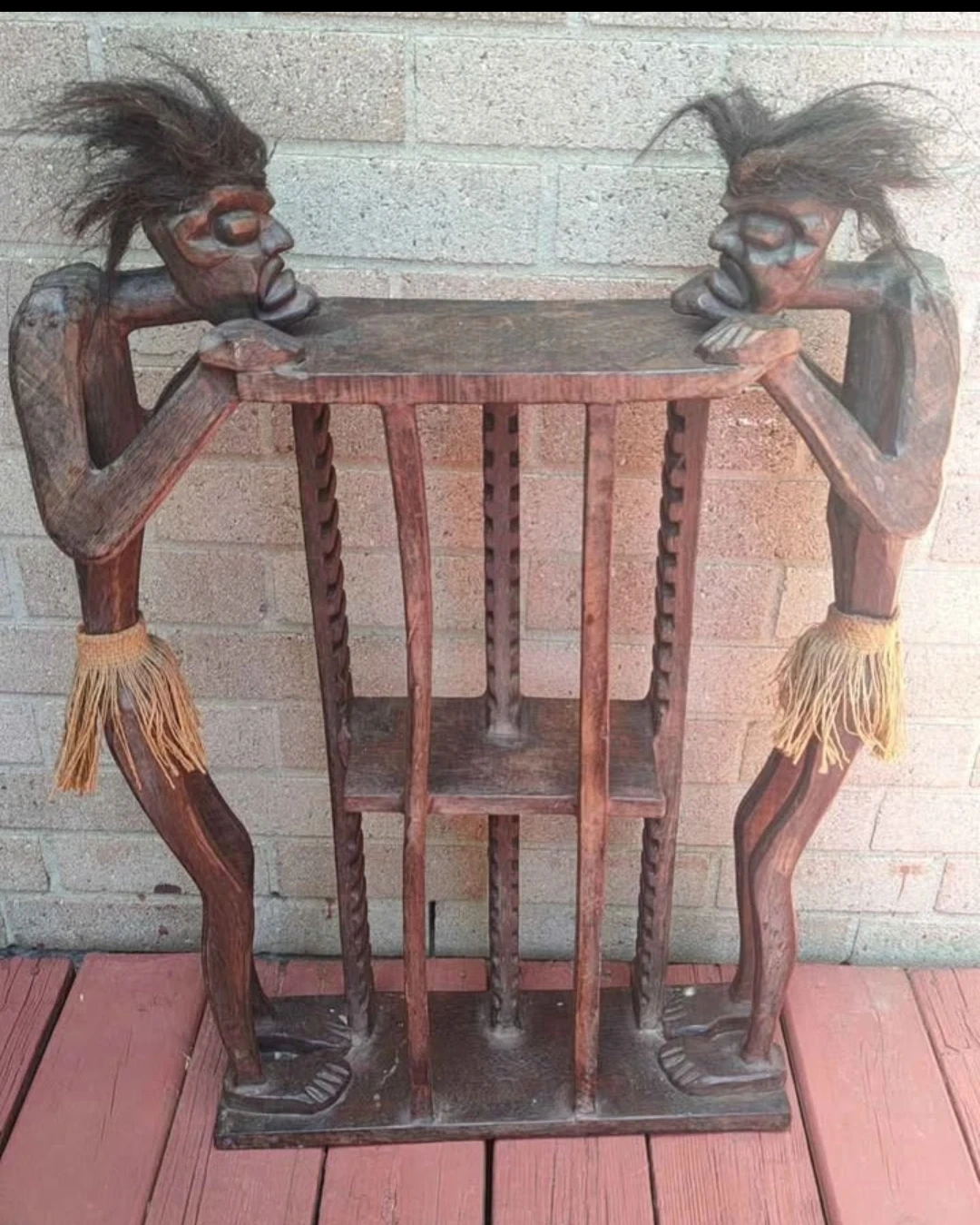 Check out this unique hand-carved CD Shelve or wooden side table! It's a real conversation starter and would look great in any room. The craftsmanship is really something special, and it's in good condition