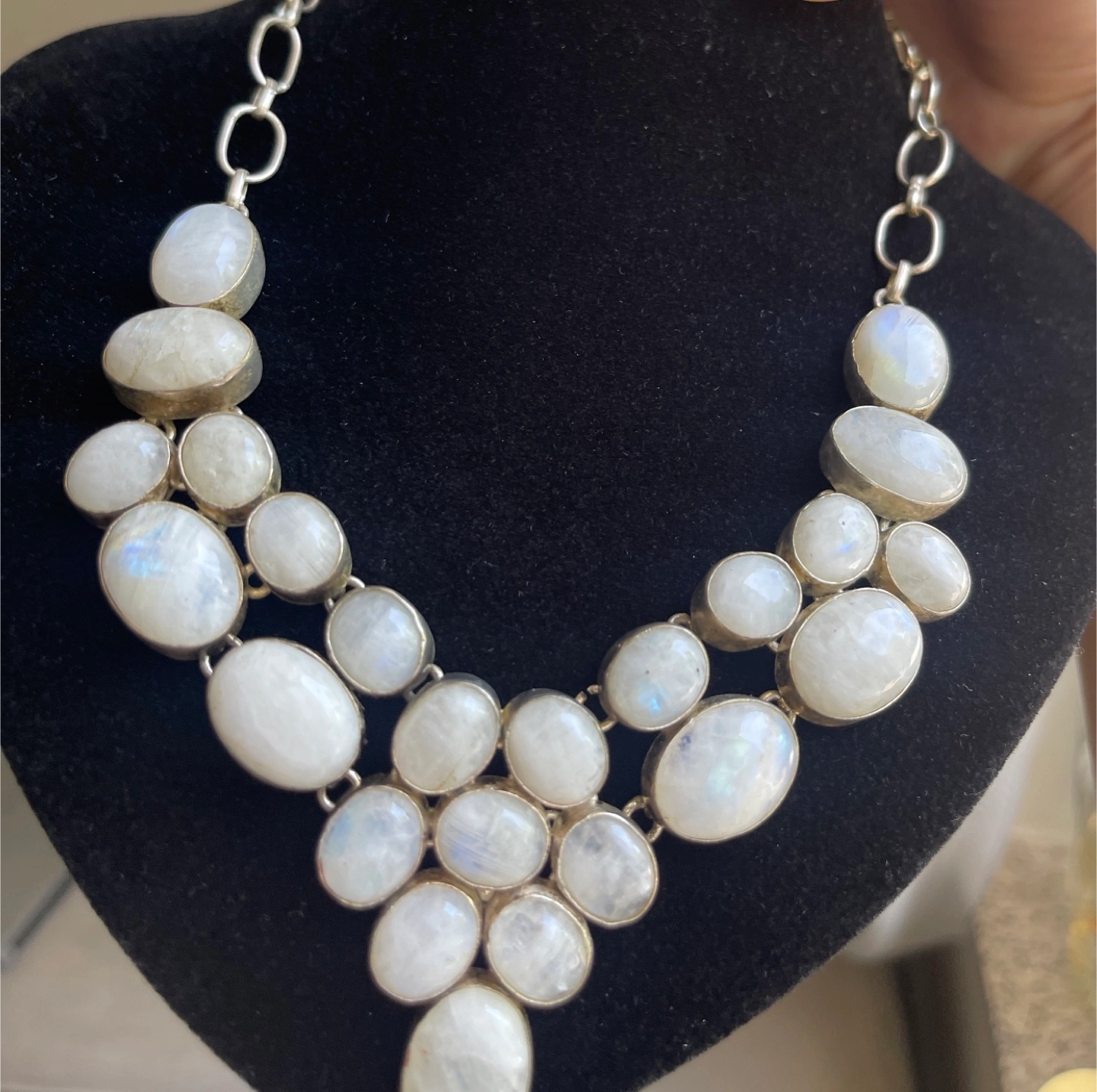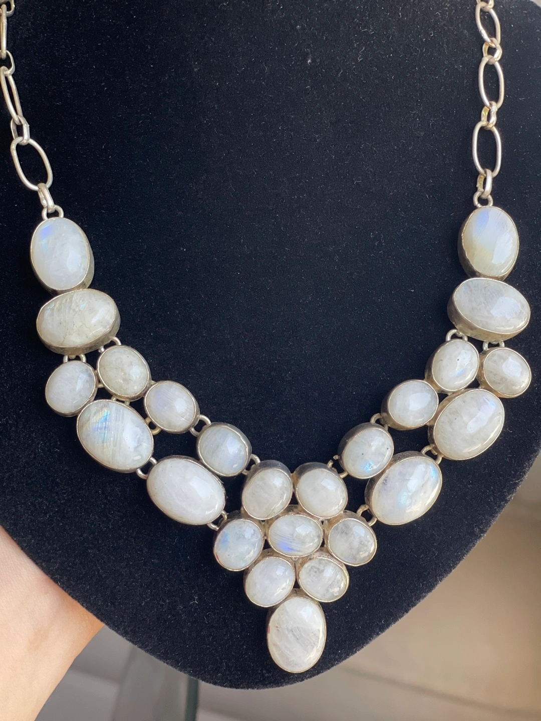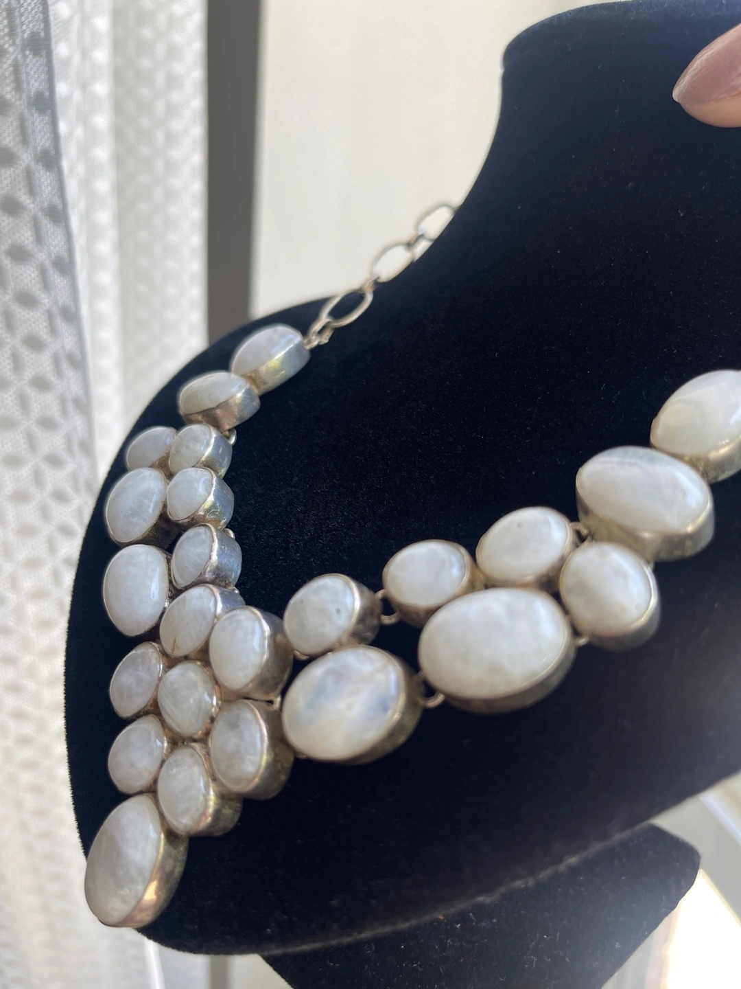318Beautiful moonstone necklace in sterling silver! It weighs 93.26 grams, as shown in the picture