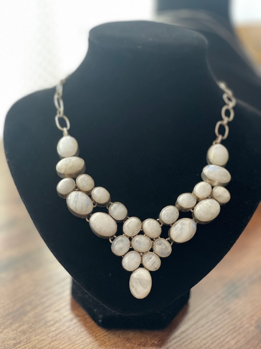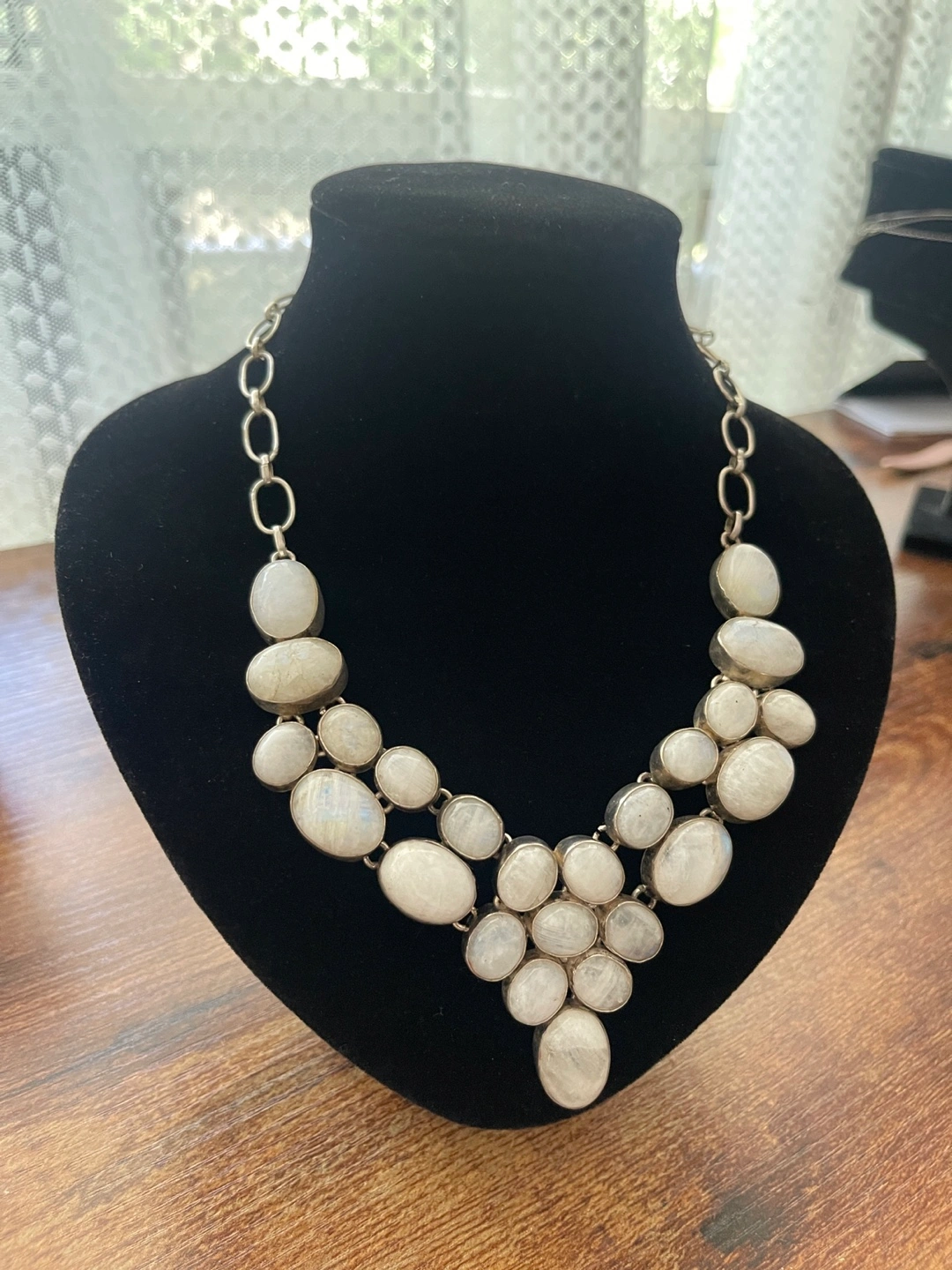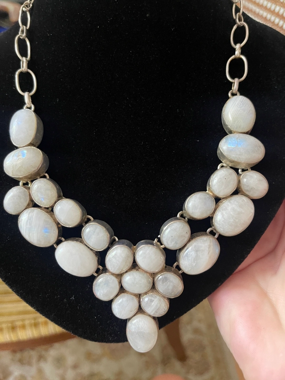 318Beautiful moonstone necklace in sterling silver! It weighs 93.26 grams, as shown in the picture