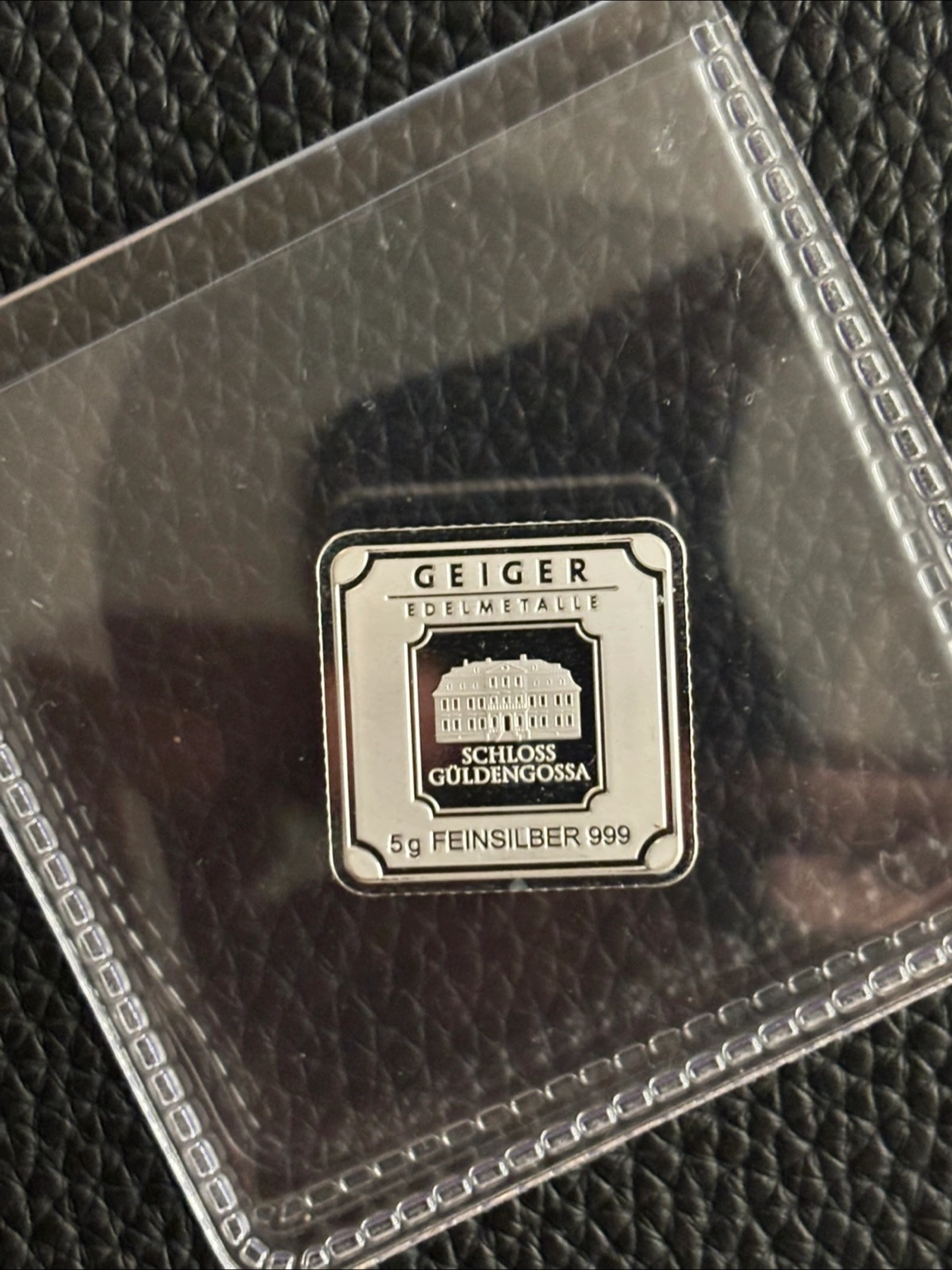 Selling a Geiger Edelmetalle 5g Feinsilber 999 silver bar. It's in great condition and comes in a protective case