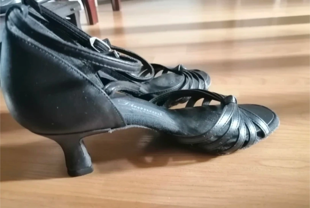Like New Diamant strappy black Dance Shoes - sz: 6 2.5 inch heel, suede bottoms. Very lightly used only a couple of wears. Pick up downtown or East Vancouver close to Joyce Skytrain station