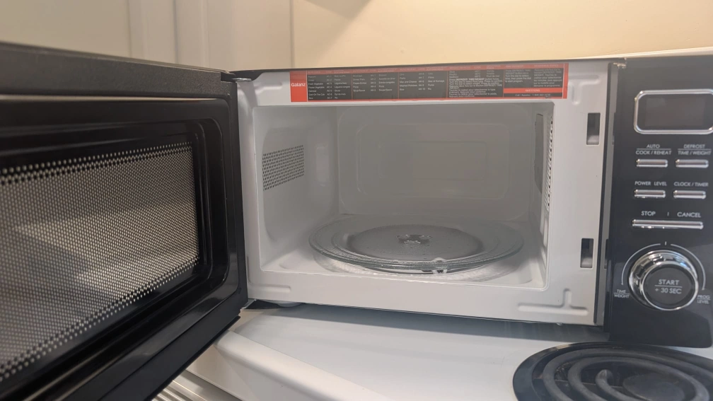 Compact, stylish, and easy to clean with a glass turntable. A charming addition to any kitchen.