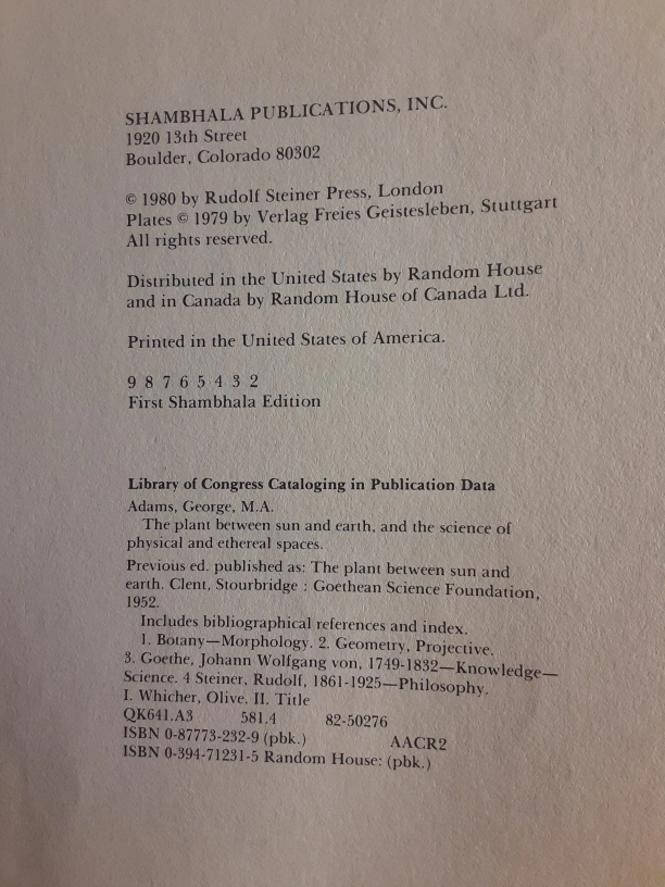 Rare Book, "The Plant Between Sun and Earth" by George Adams and Olive Whicher. It's a fascinating exploration of nature, botany, sacred geometry etc.