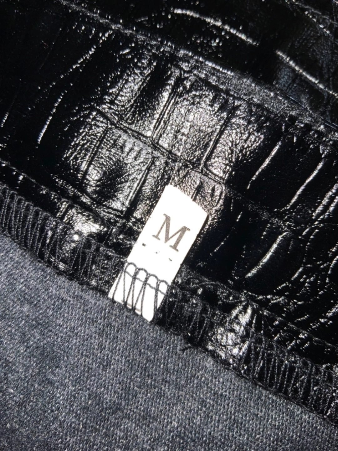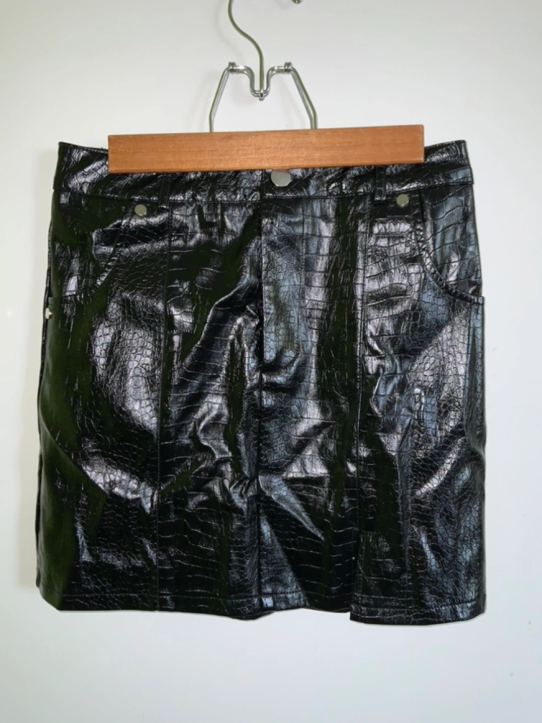 Selling a stylish black mini skirt with a faux crocodile texture! It's a size medium. ✨ Moving at the end of the month, check out my other deals !!