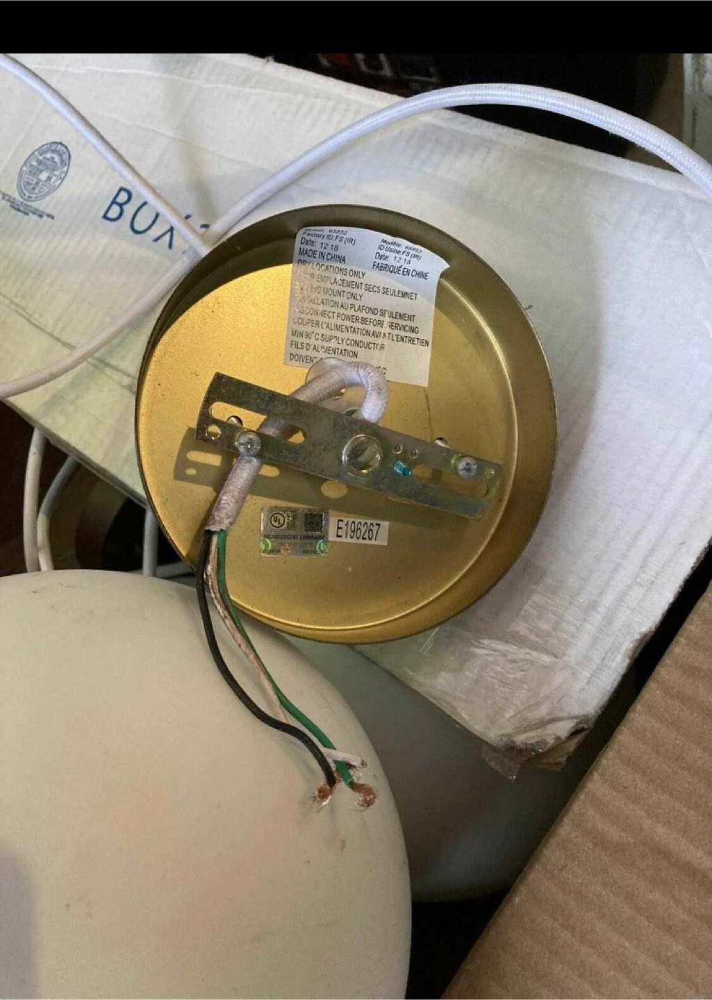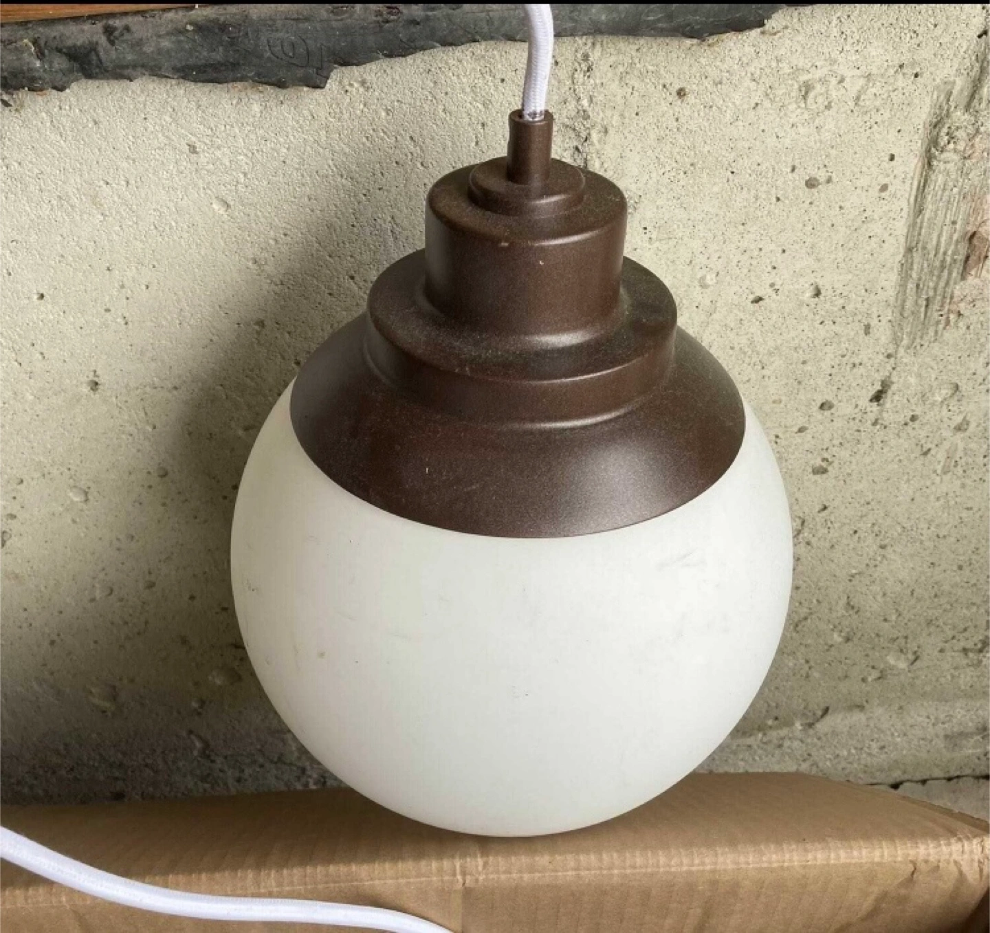 Selling a set of 5 globe pendant lights! They feature a brown top and a white globe. They come in a box and are ready to brighten up your space