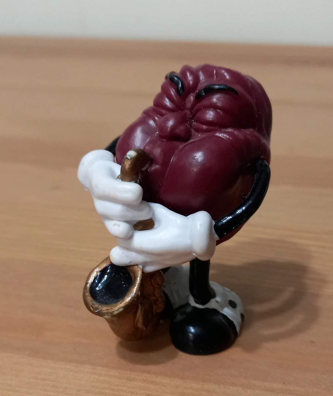 All the rage in the late 1980s... the California Raisins figurines were very popular characters. Bring home an affordable piece of nostalgia (about 35 years old, this figure). Stands about 2.5" tall. Perfect for the collector.