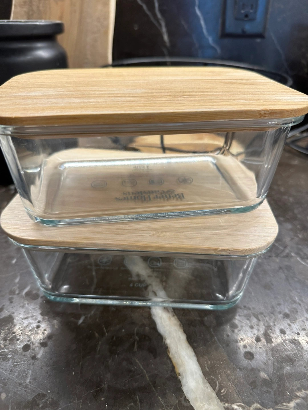 I'm selling these glass food storage containers. Each container has a bamboo lid.