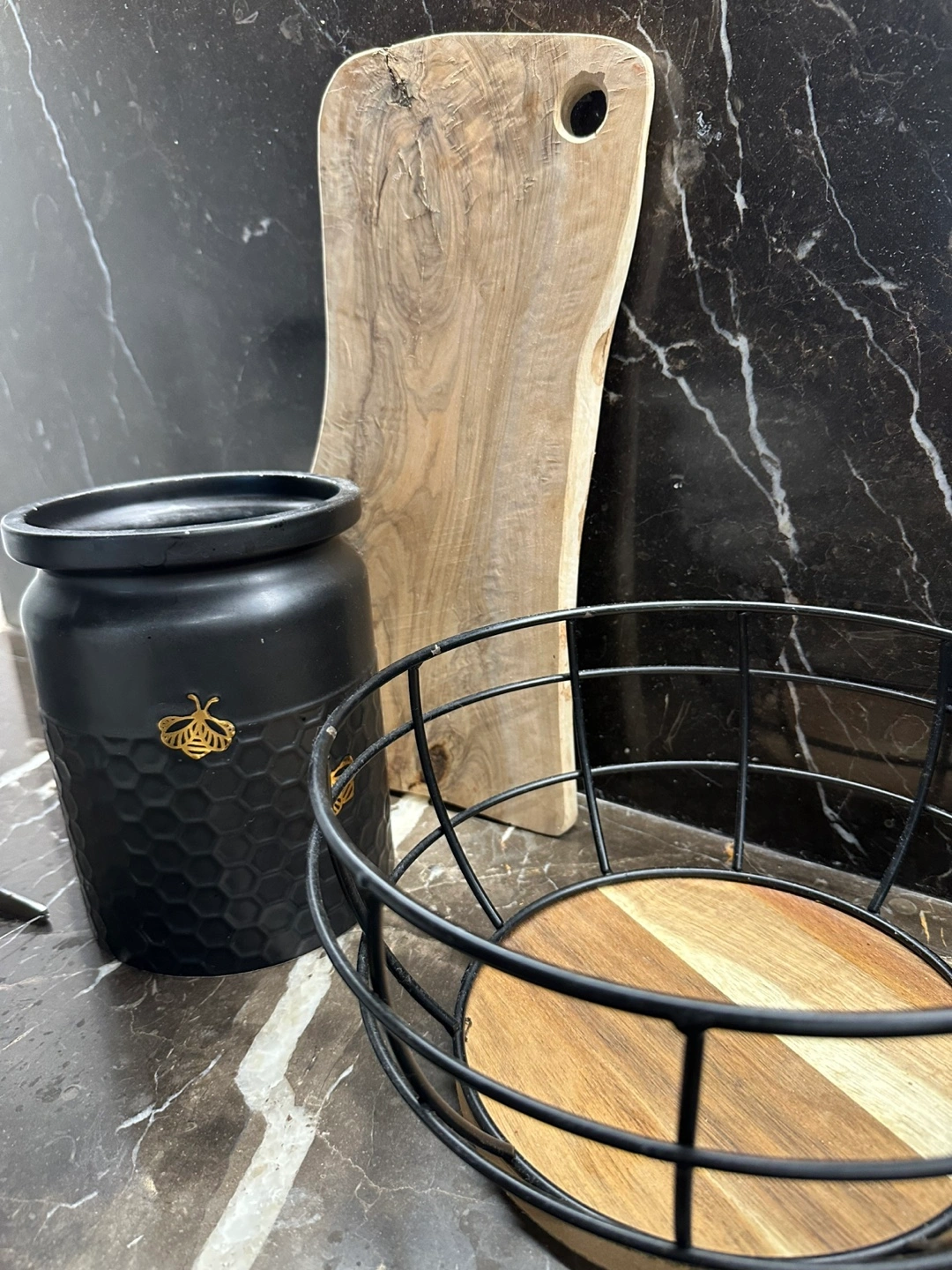 Utensil holder (black with bees)