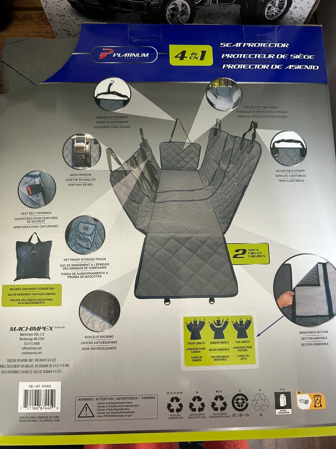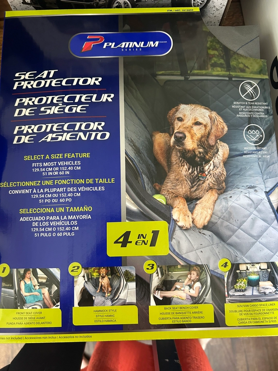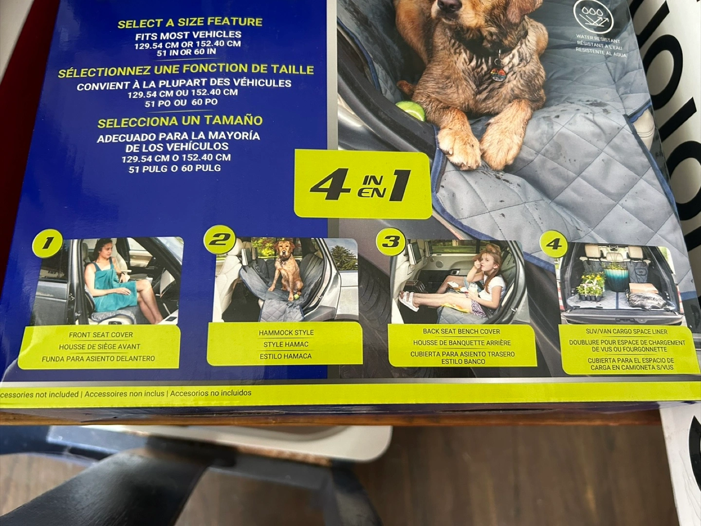 Brand new, never used. This is the ideal seat protector for pets, kids, or geat in the trunk. Can be used in the front seat, back seat, or trunk, just depends on yout needs. You can hang it like a hammock or place it on the seat for that extra bit of protection.
