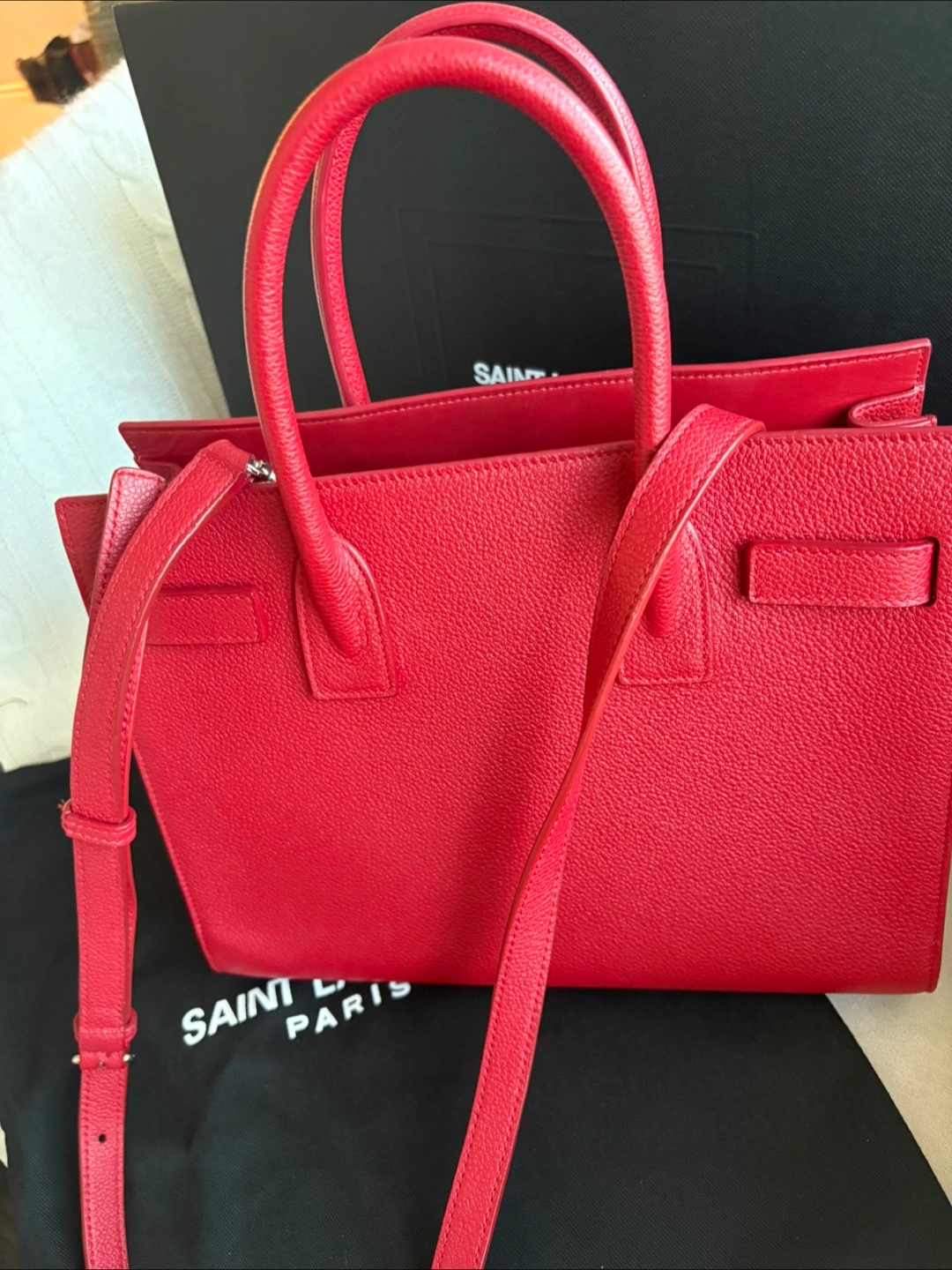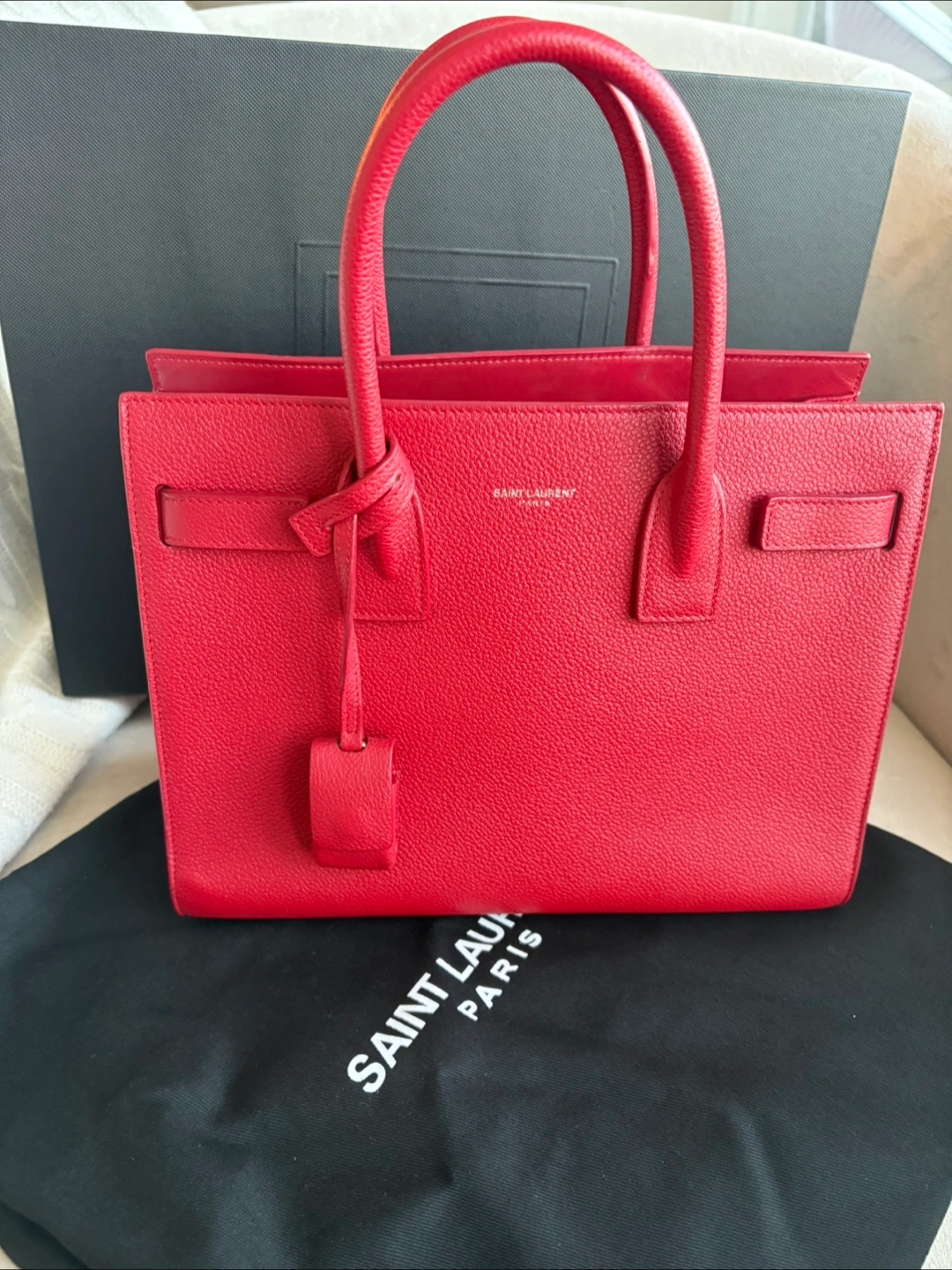 Selling a beautiful Saint Laurent Sac De Jour size baby, in red. It's in great condition and comes with its original box and dust bag.