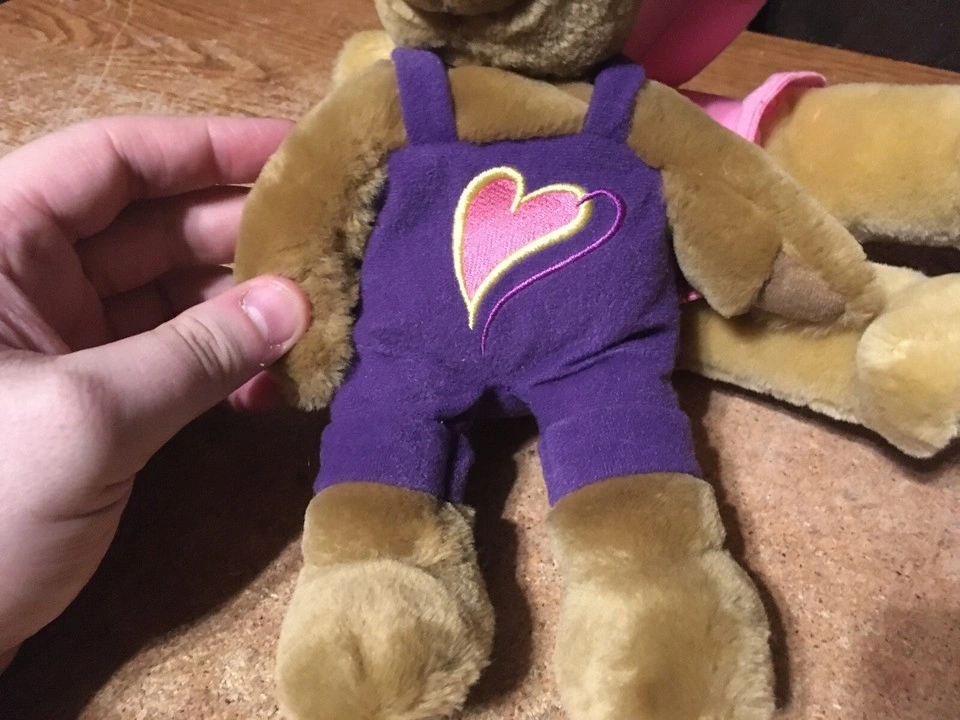 I have two adorable plush teddy bears for sale! One is wearing purple overalls with a pink heart, and the other is in a cute pink shirt with a blue heart. They're both in great condition and ready for a new home. both in good condition 9 in tall pick up at house